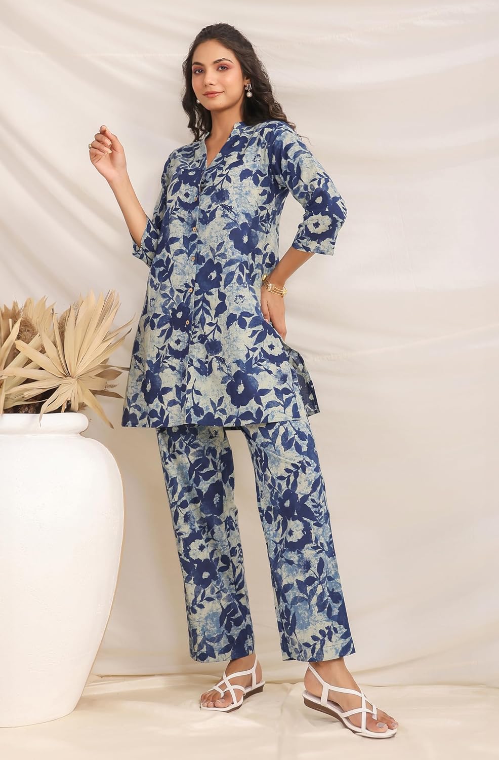 Janasya Women’s Pure Cotton Floral Printed Straight Co-ord Set