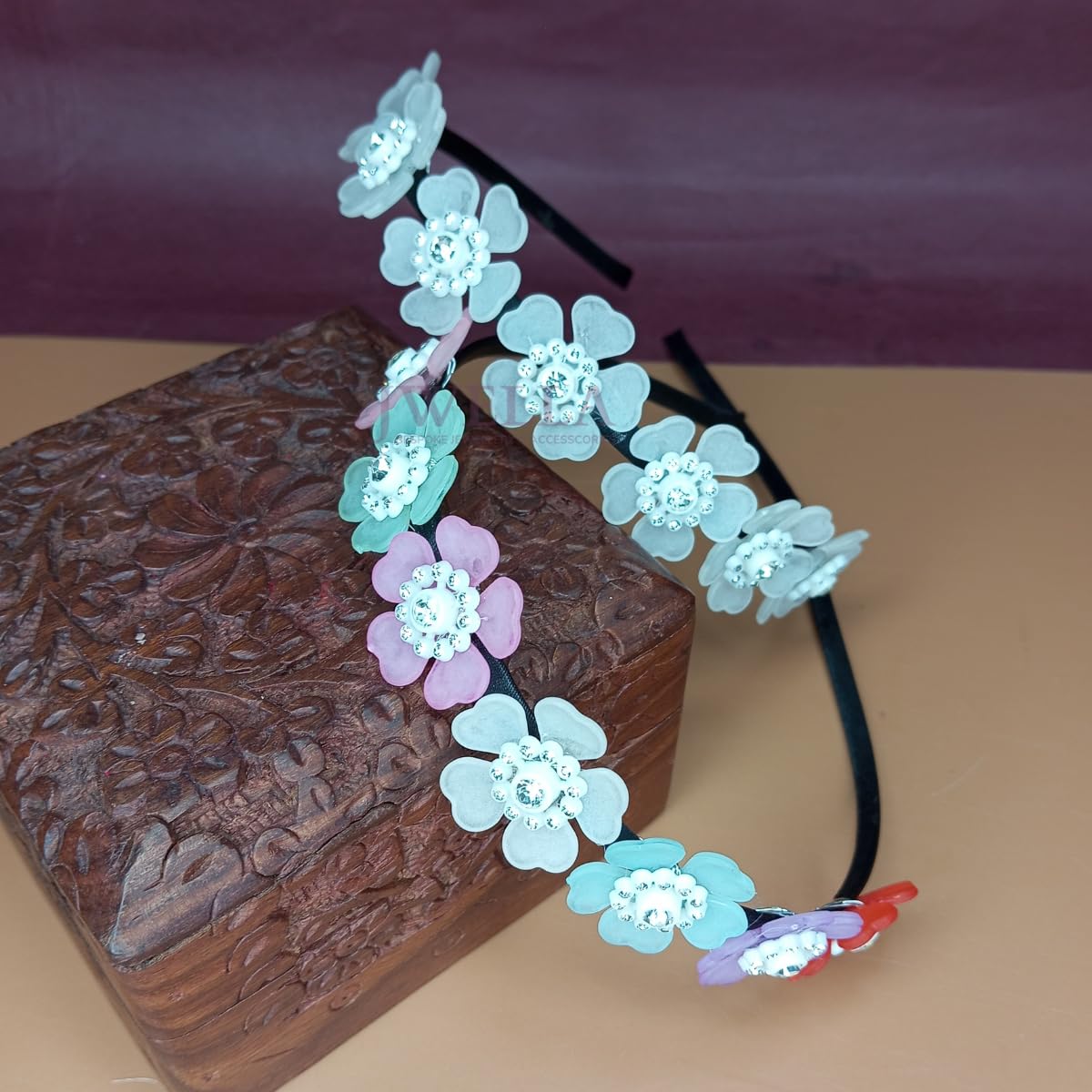 Set of 2 Hairbands: Includes one colorful floral band and one white flower band.