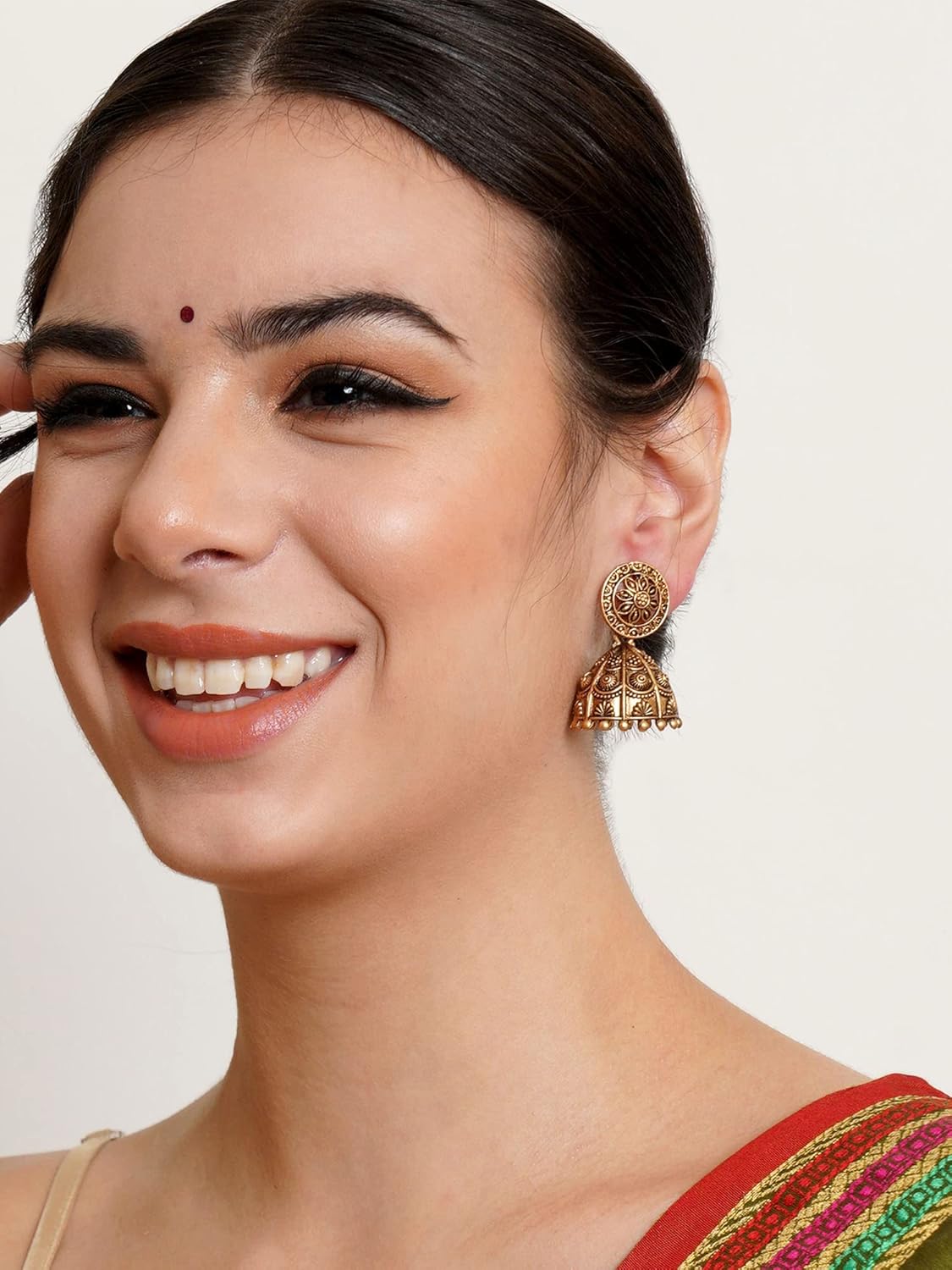Karatcart Antique Gold Plated Floral Jhumki Earrings for Women