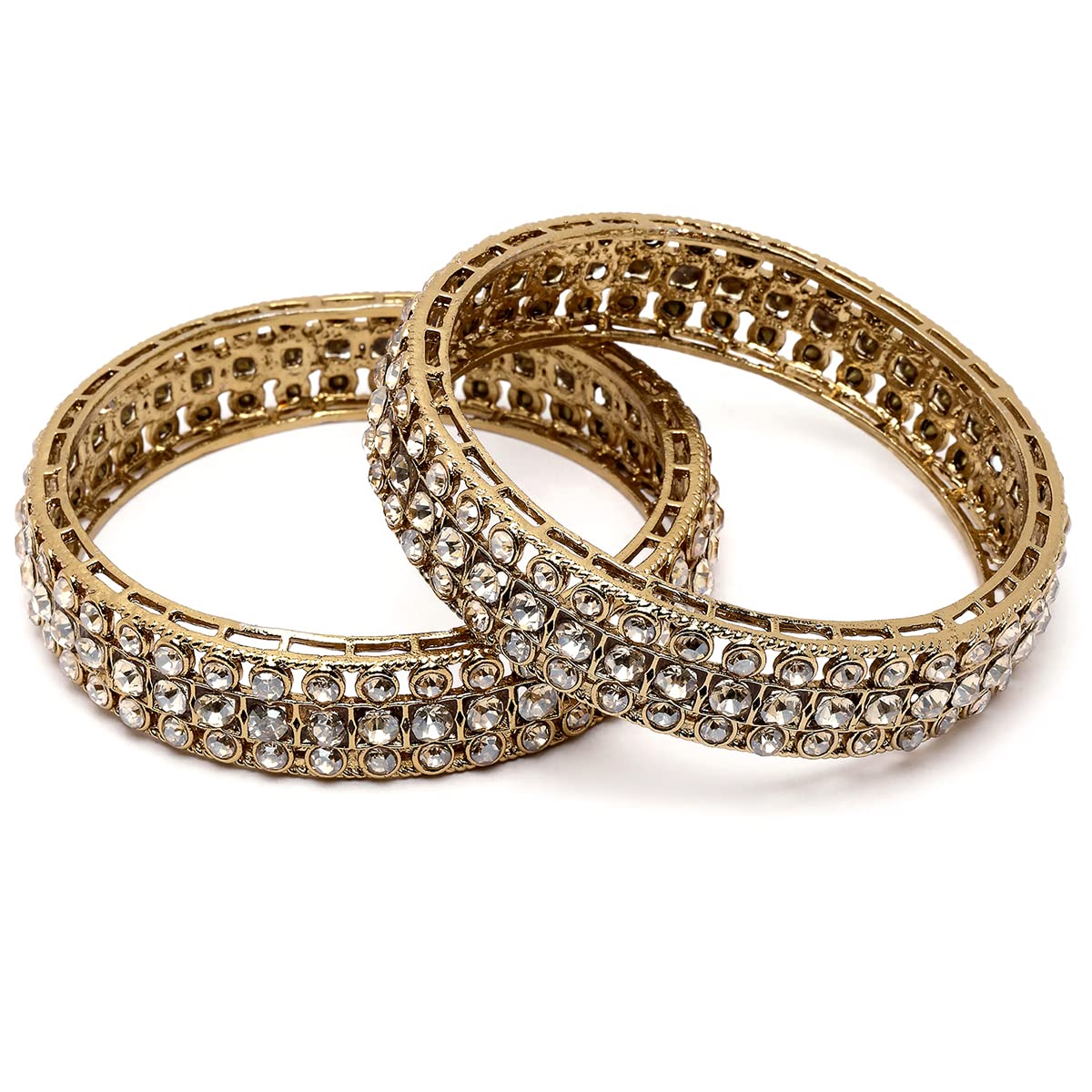 Karatcart Antique Gold Plated Set of 2 Kundan Studded Rajwadi Bangles for Women