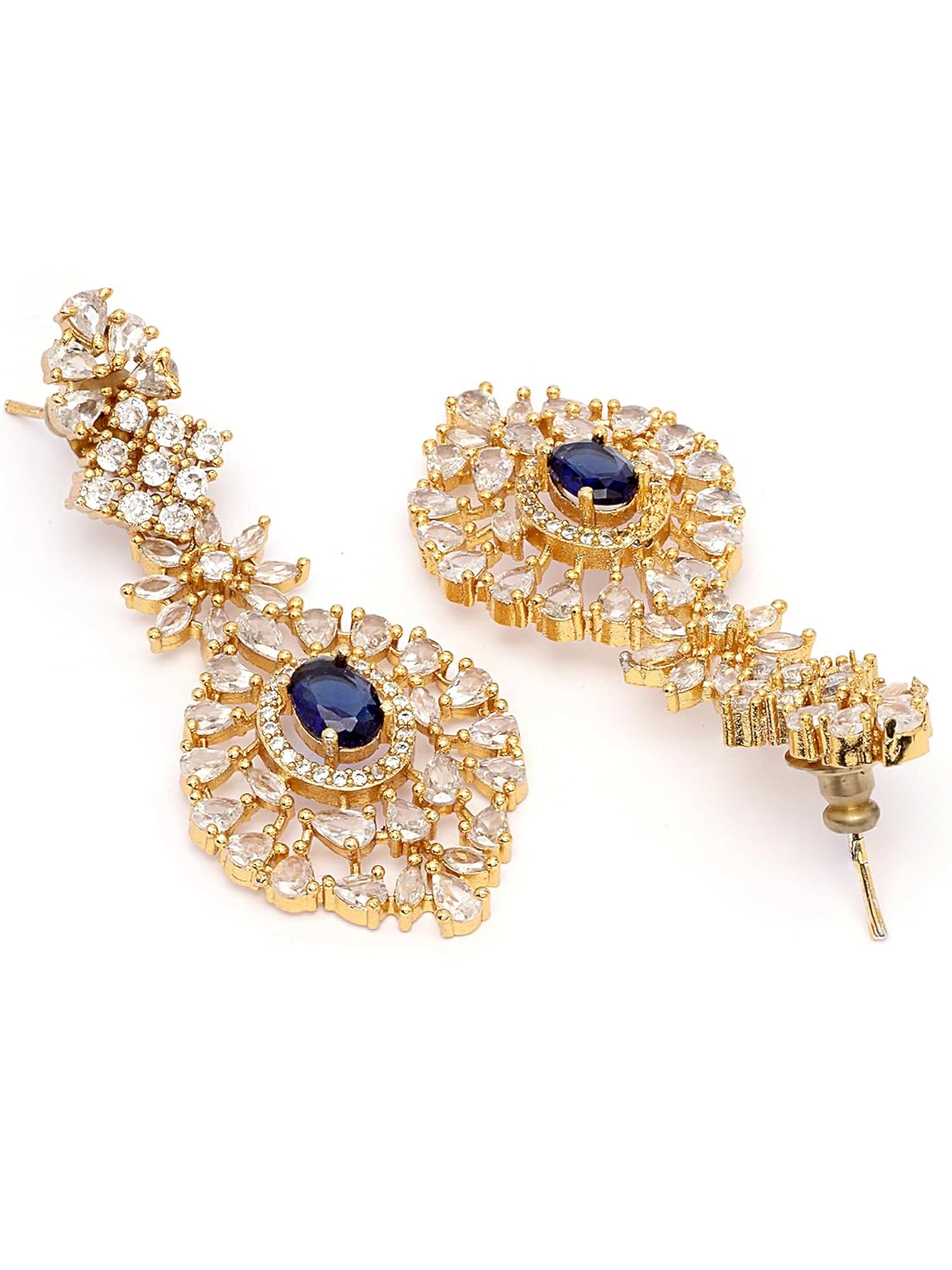 KARATCART Elegant Gold-Plated Blue American Diamond Necklace Set for Women. Elevate your style instantly! This stunning, classic jewellery set features dazzling blue American Diamonds on a radiant gold-plated base. Hypoallergenic and durable alloy/metal construction ensures comfortable, long-lasting wear. Perfect for parties or daily elegance. Add sparkle to your collection—shop now!