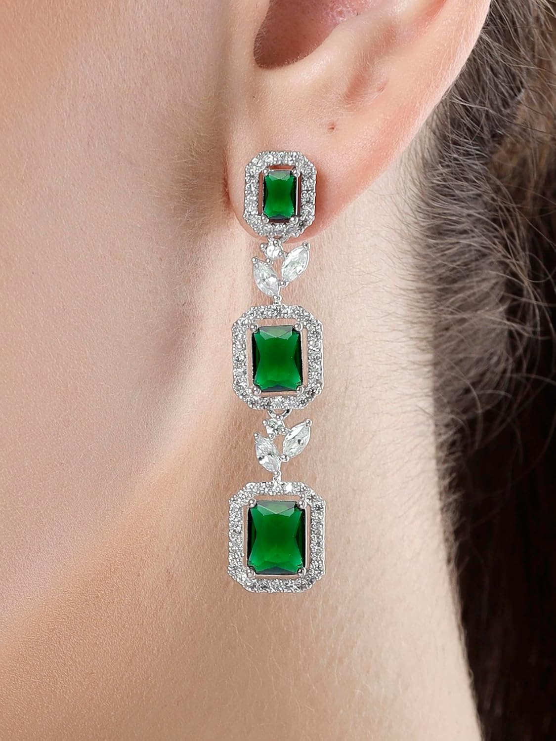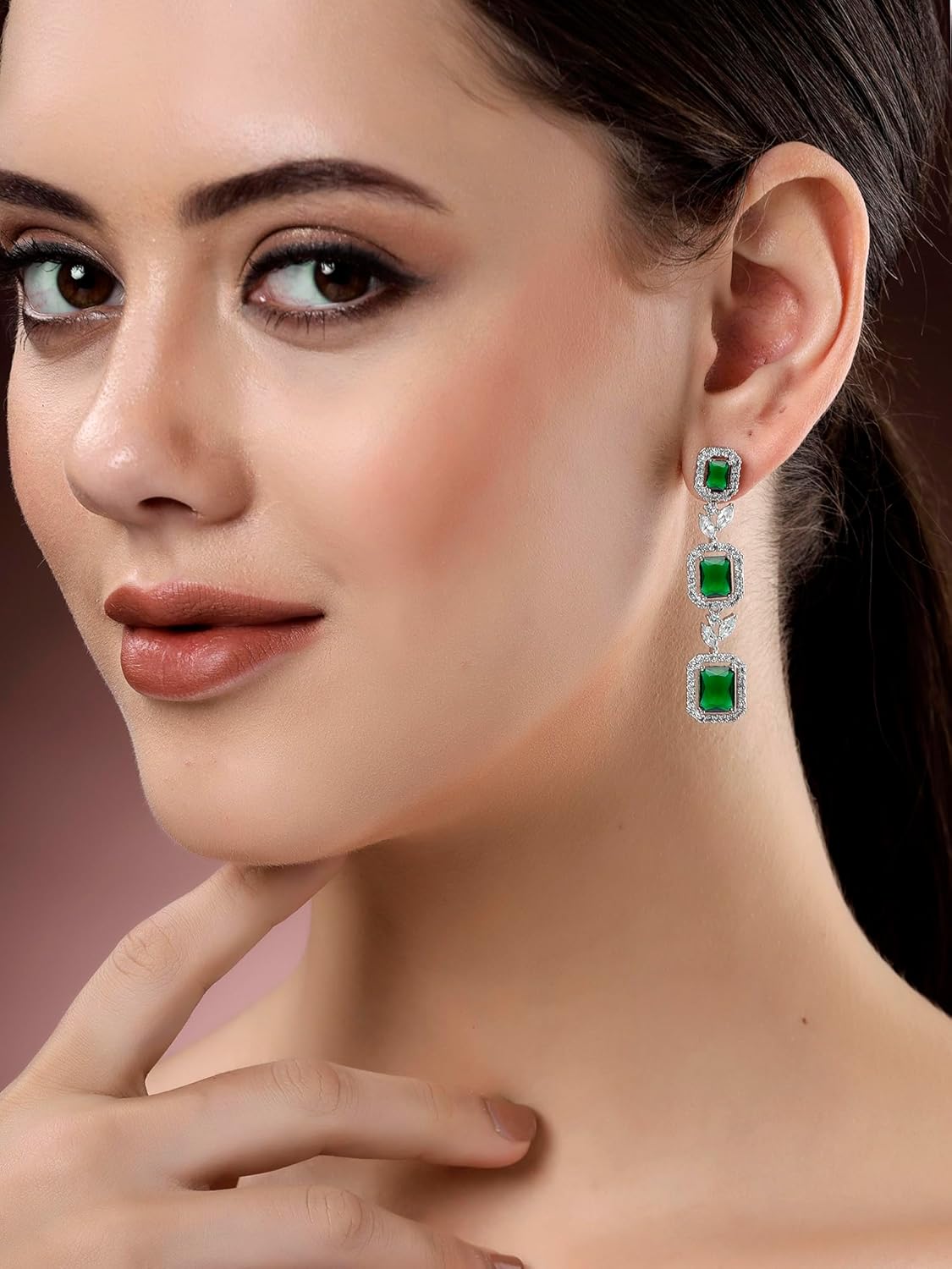 Karatcart Elegant Green and White American Diamond Drop Earrings