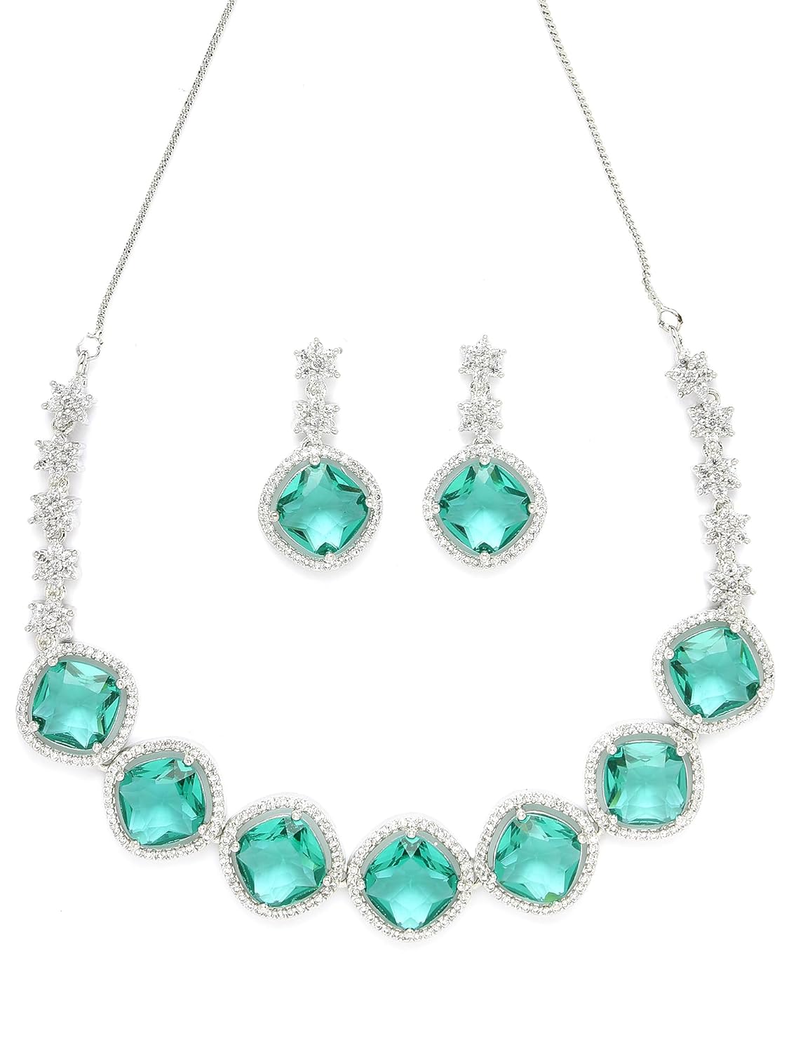 Karatcart Elegant Light Blue American Diamond Necklace Set for Women