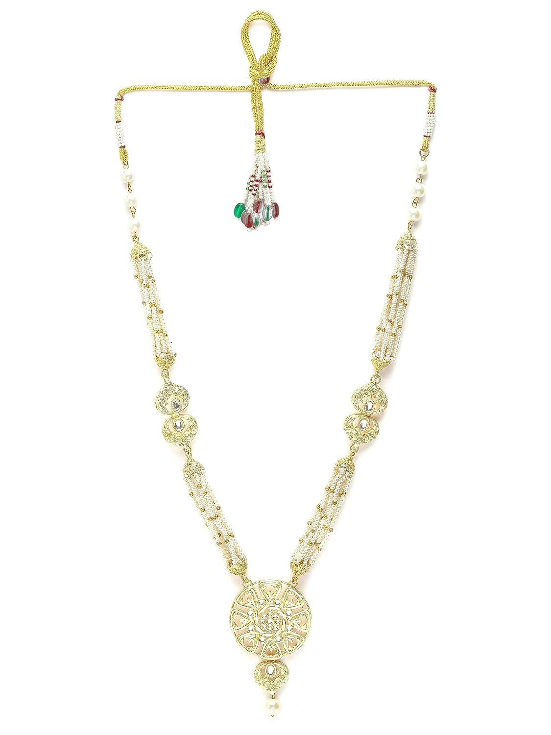 Karatcart Gold Plated Beaded Pearl and Kundan Rani Haar Necklace Set for Women