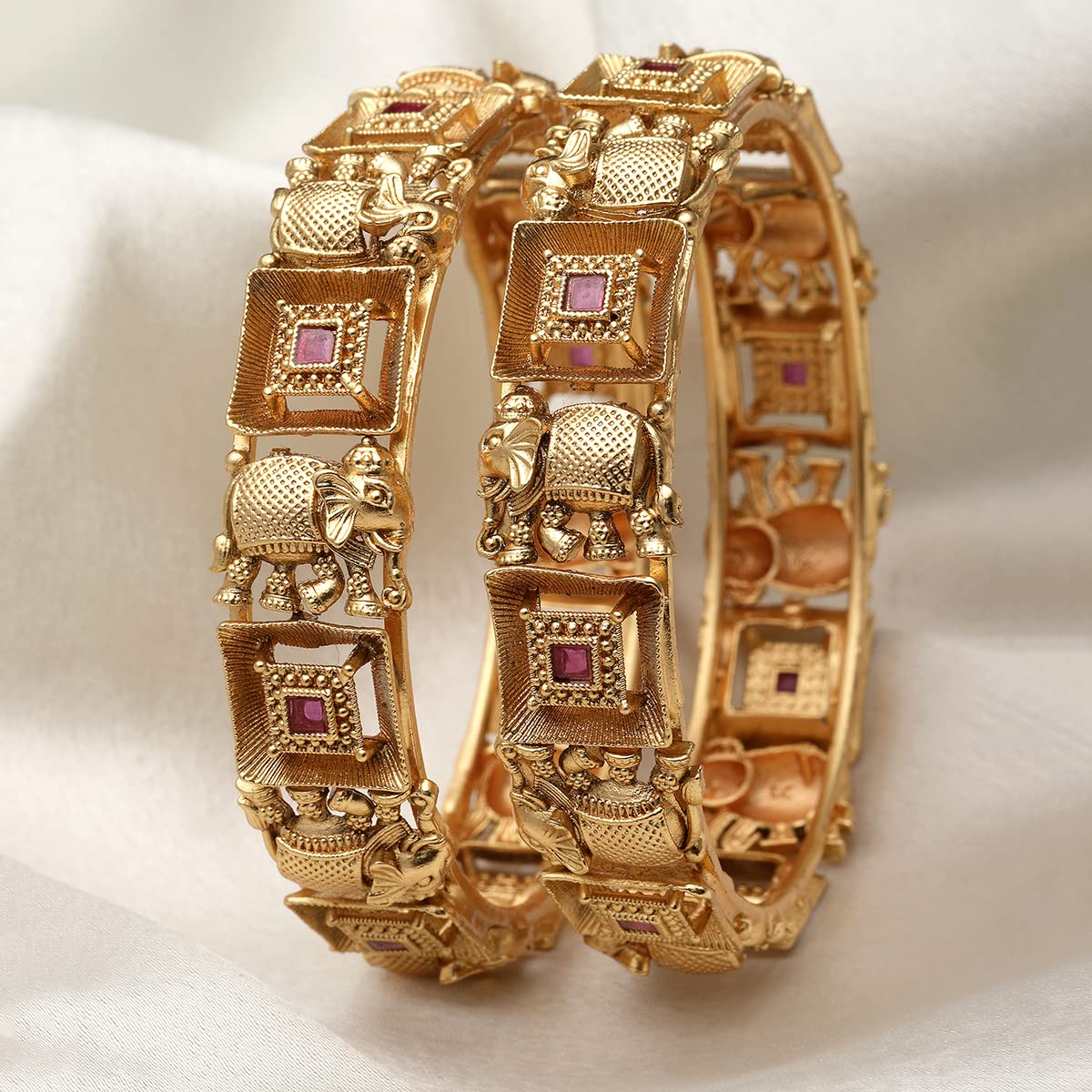 Karatcart Gold Plated Elephant Design Set of 2 Bangles for Women