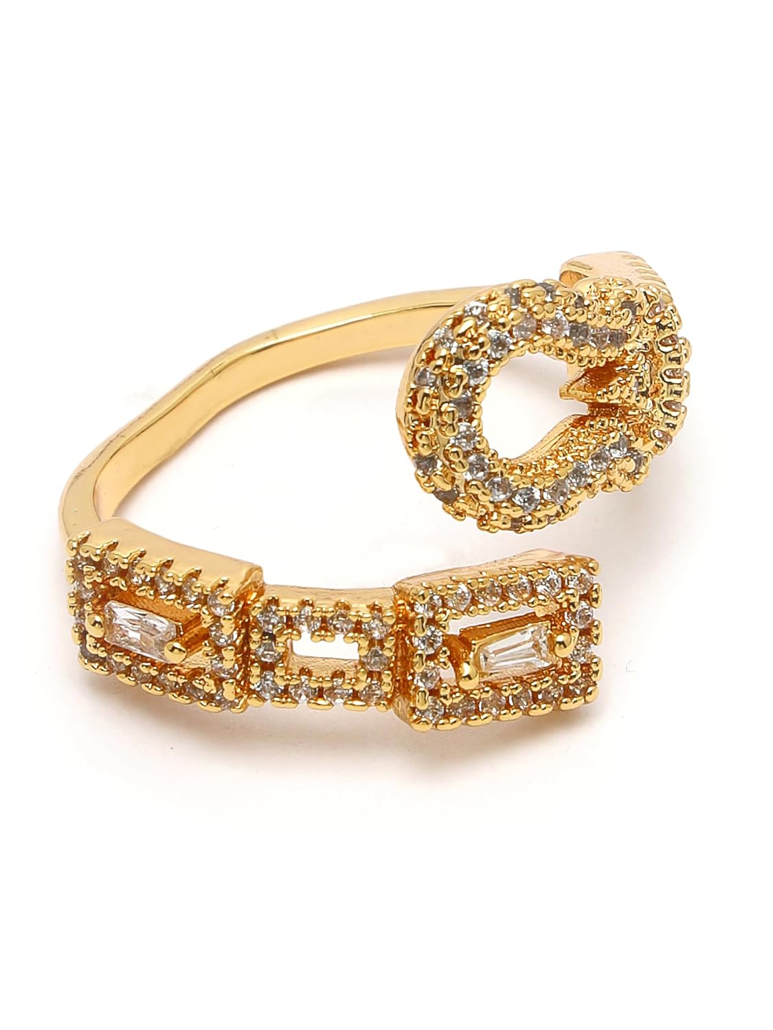 Karatcart Gold Plated Green Cubic Zirconia Studded Door Knob Design Women’s Ring