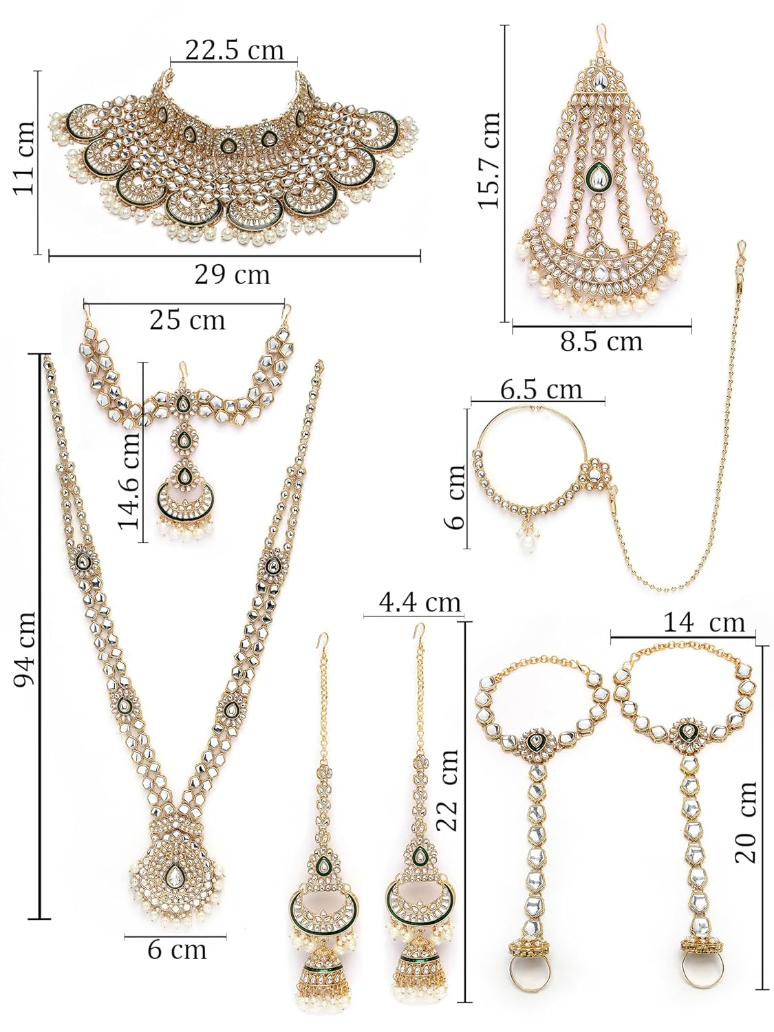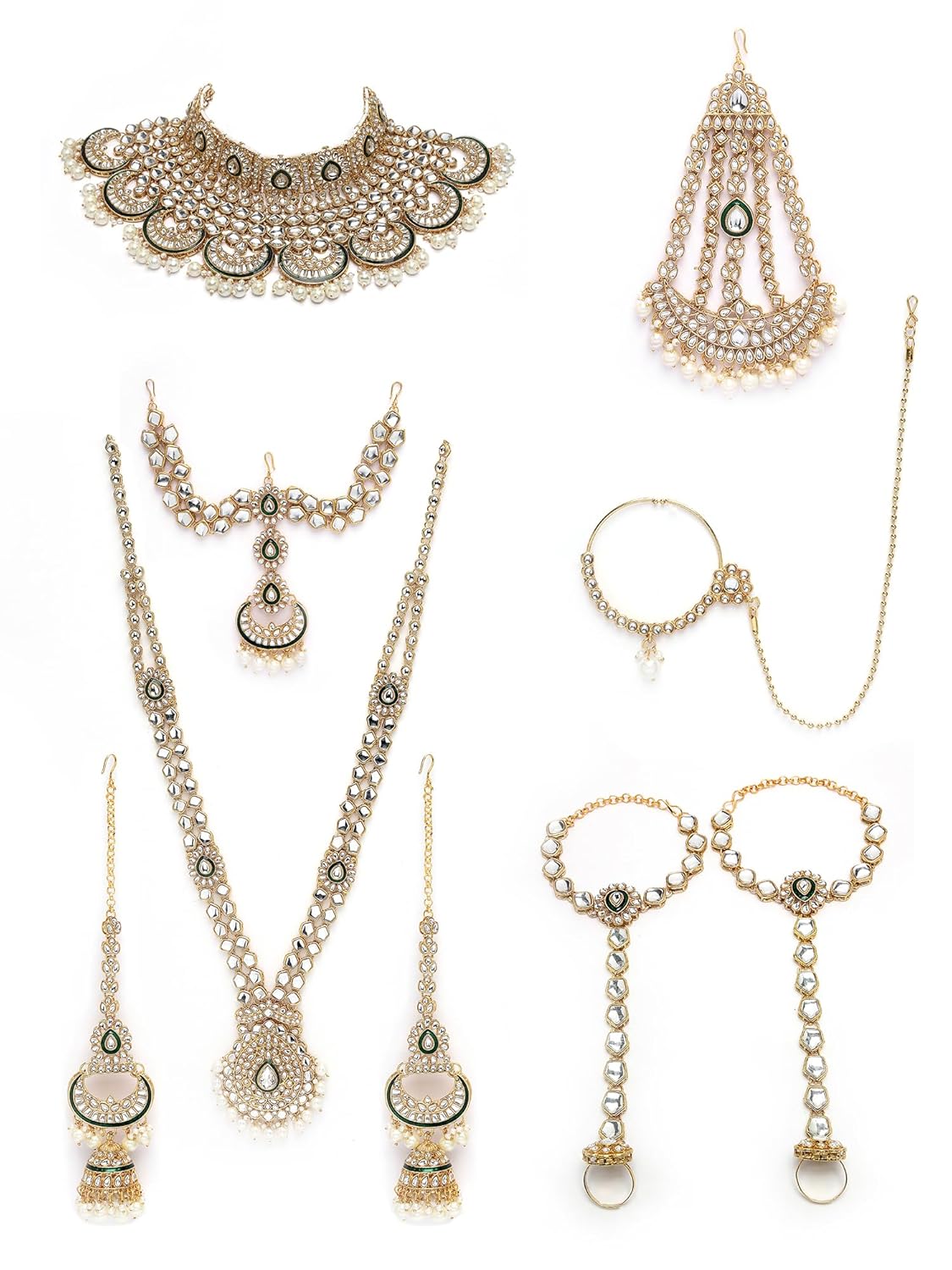 Karatcart Gold Plated Green Meena Ethnic Indian Traditional Kundan Dulhan Bridal Jewellery Set