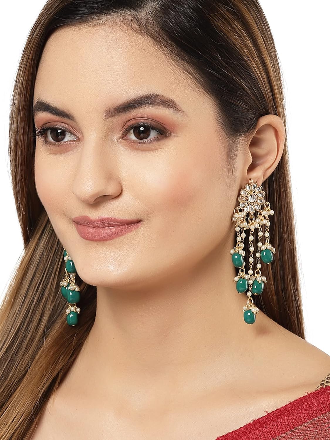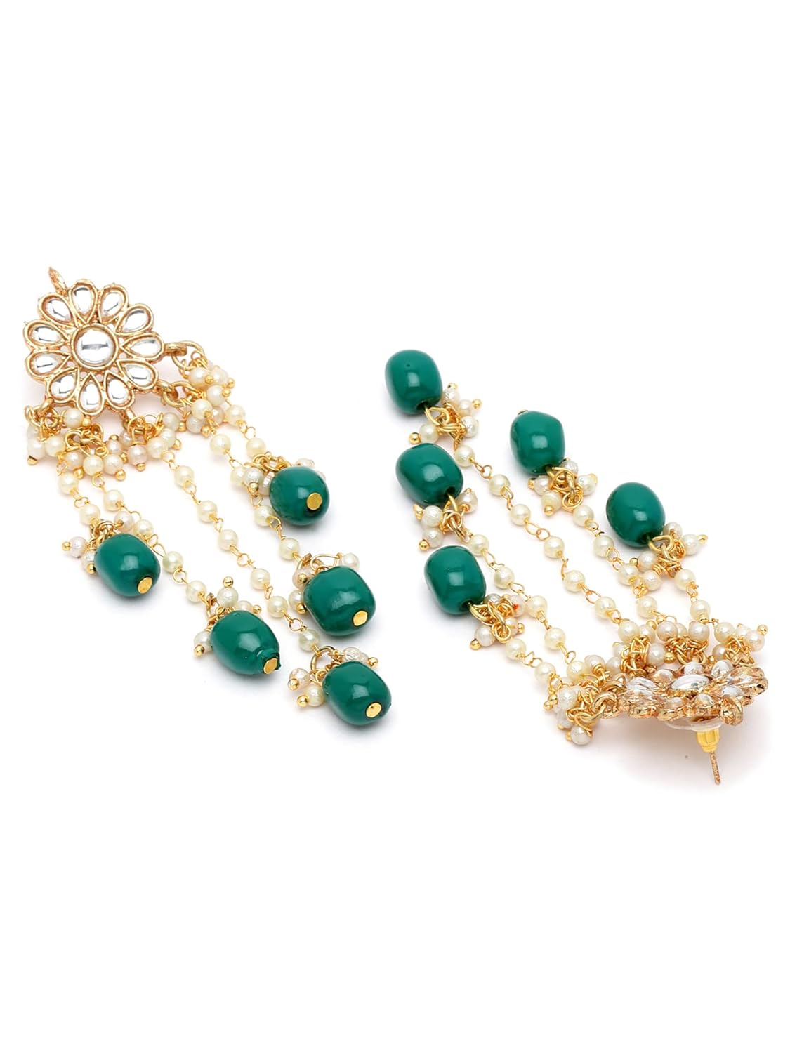 Karatcart Gold Plated Green Tumble Kundan Tassel Earringsfor Women