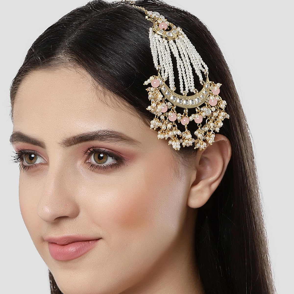 Karatcart Gold Plated Handcrafted Pink Bead Kundan Passa for Women