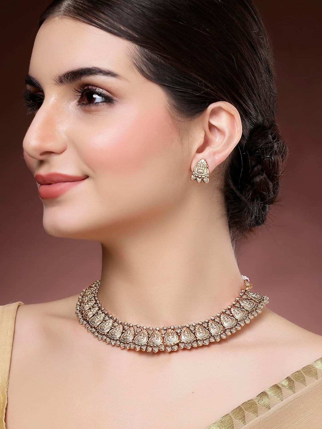 Karatcart Gold Plated Laxmi Mata Engraved Kalash Design Temple Jewellery Set for Women