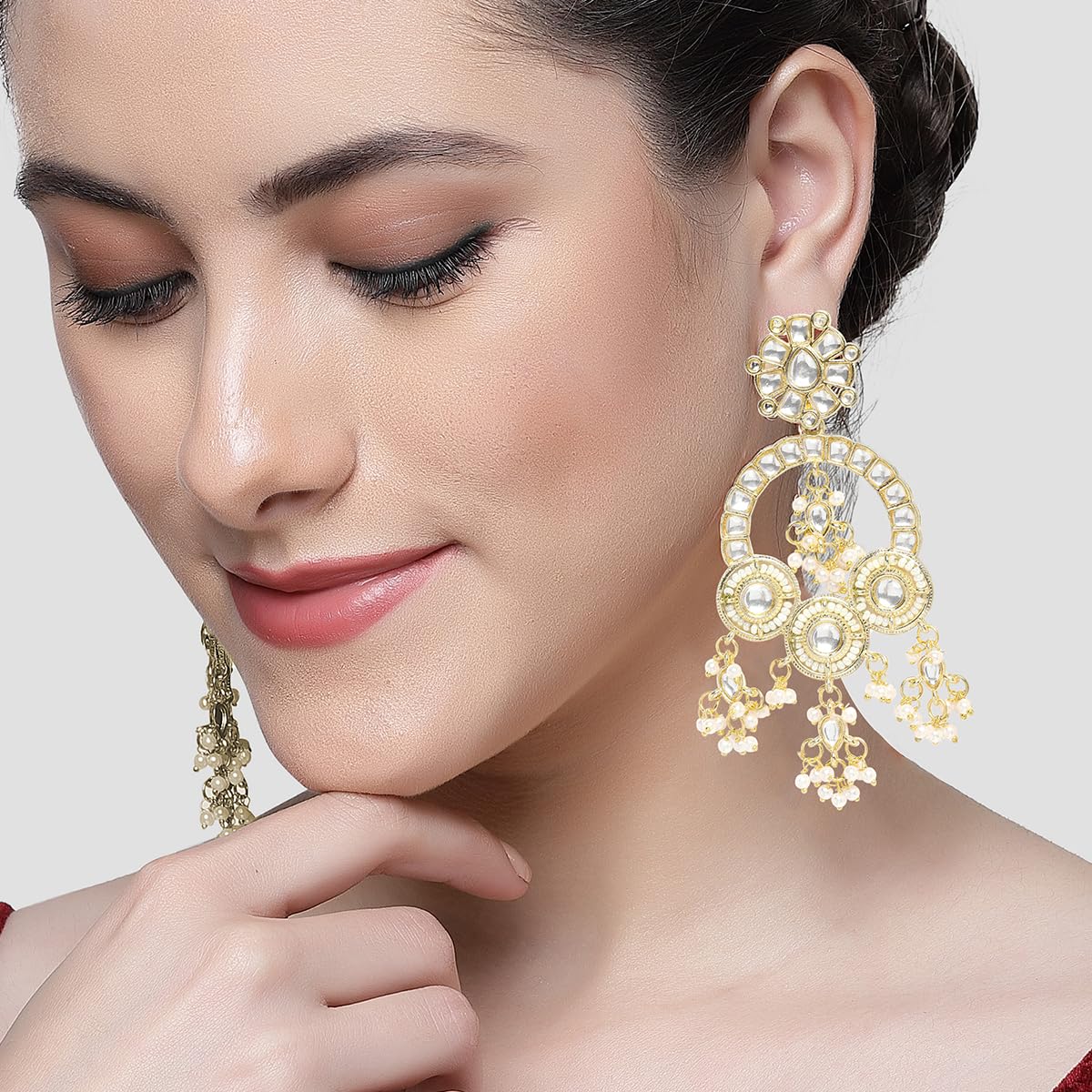 This is a Gold Earrings by Brand Karatcart which has Mirror stones.This is Gold Plated. We at KARATCART understand your desire to look the best on any day & we thrive in making any day an occasion. Every individual at Karatcart carries a passion for jewellery and it reflects in our beautiful designs as well as in our breathtaking craftsmanship. We create unique jewellery so you can make heads turn.