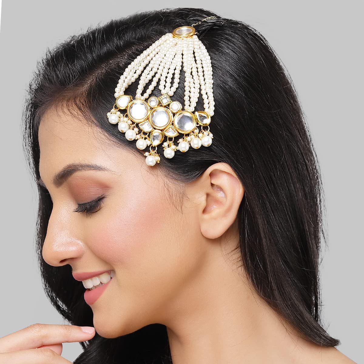 Karatcart Gold Plated Pearl Beads Studded Floral Design Kundan Passa for Women