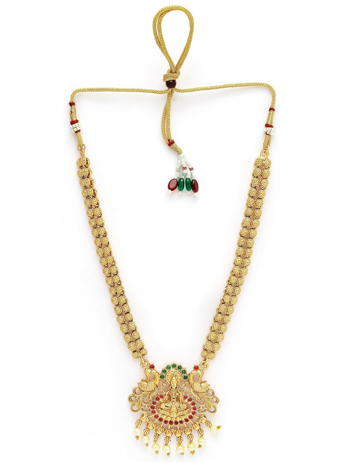 Karatcart Gold Plated Pearl Studded Laxmi Mata Temple Jewellery Set for Women