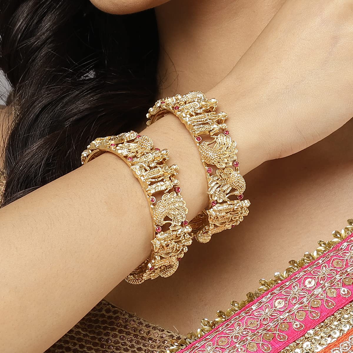 Karatcart Gold Plated Set of 2 Shri Ram Bangles for Women