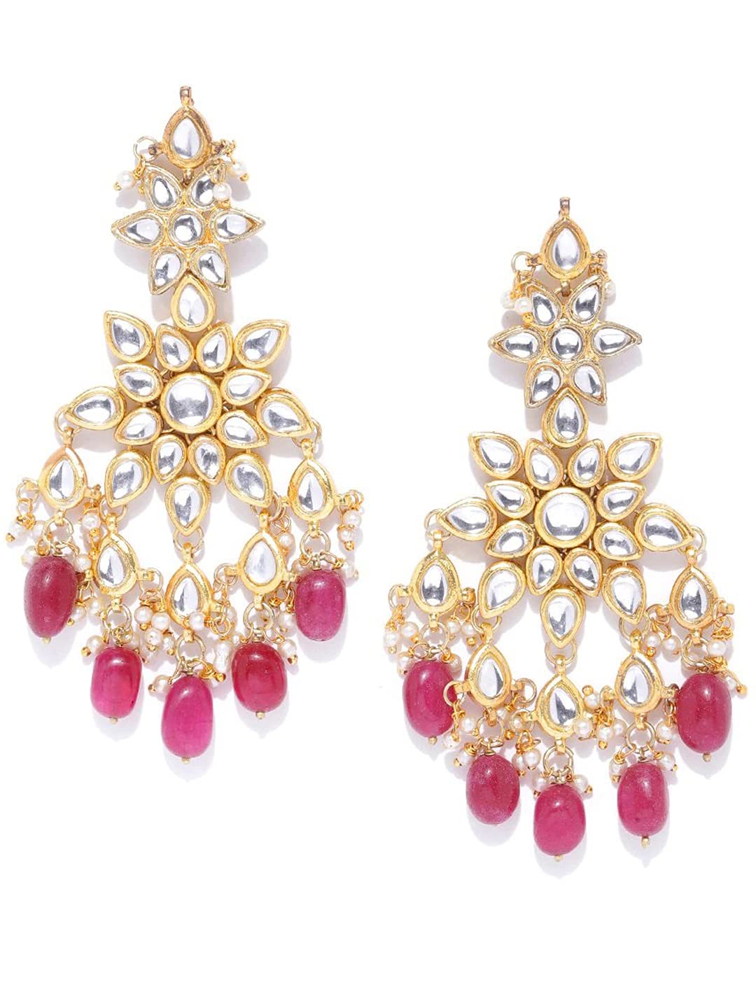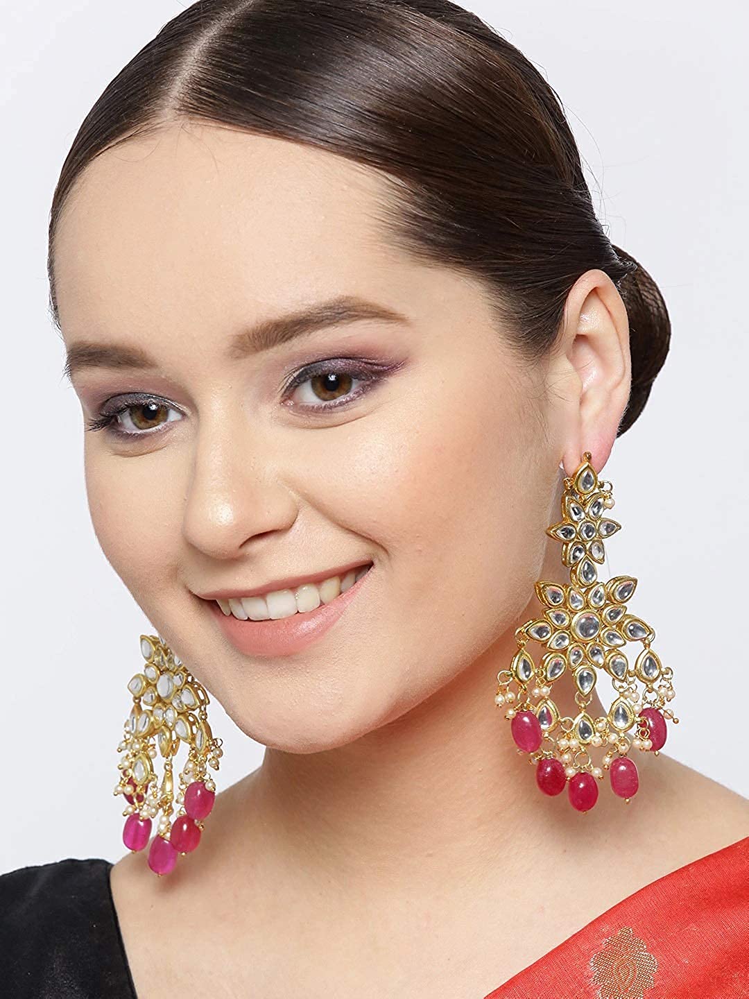 Karatcart Gold Plated Star Design Kundan Dangler Earring for Women’s, Red