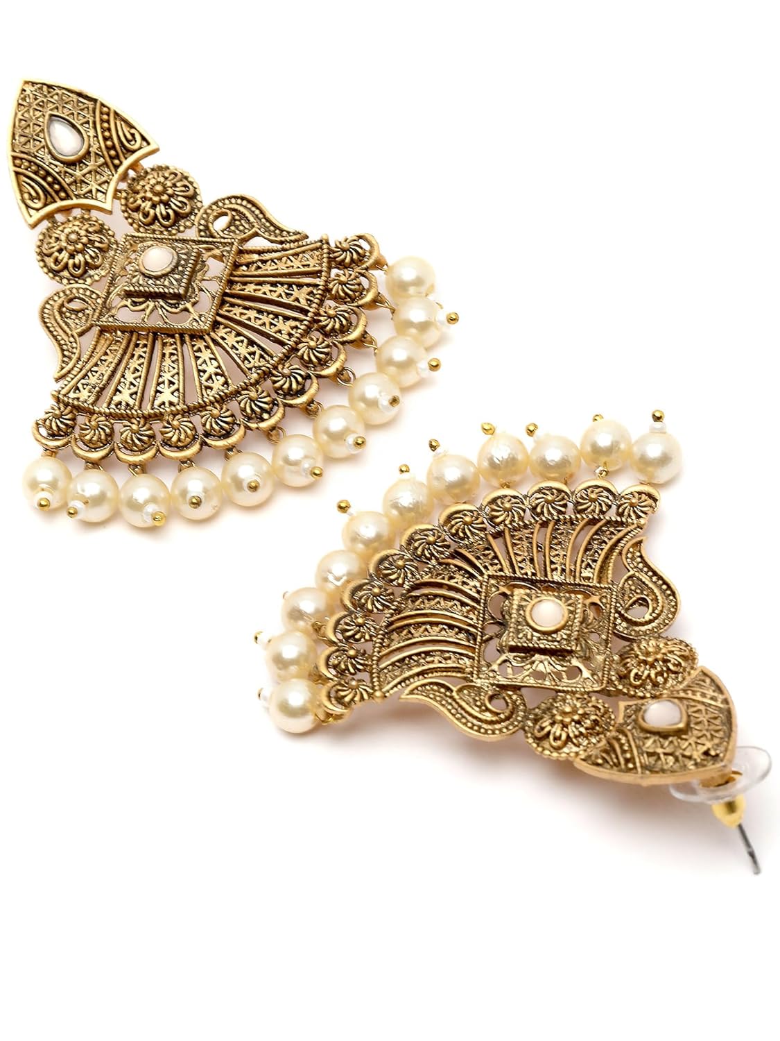 Karatcart Golden Pearl and Kundan Studded Gold Plated Dangler Earrings for Women