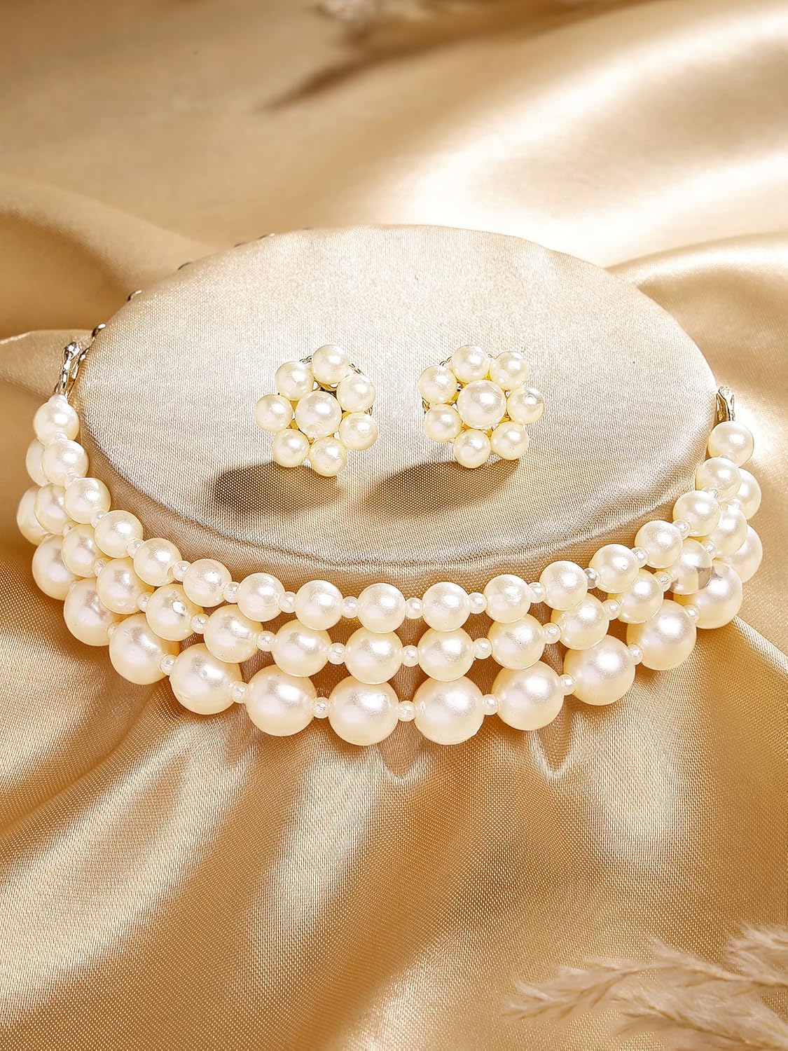 Karatcart Graduating Pearl Beaded Choker Necklace Set for Women