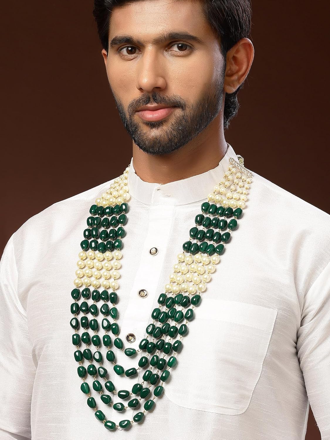 Karatcart Green Tumble and Pearl Maharaja Haar for Men