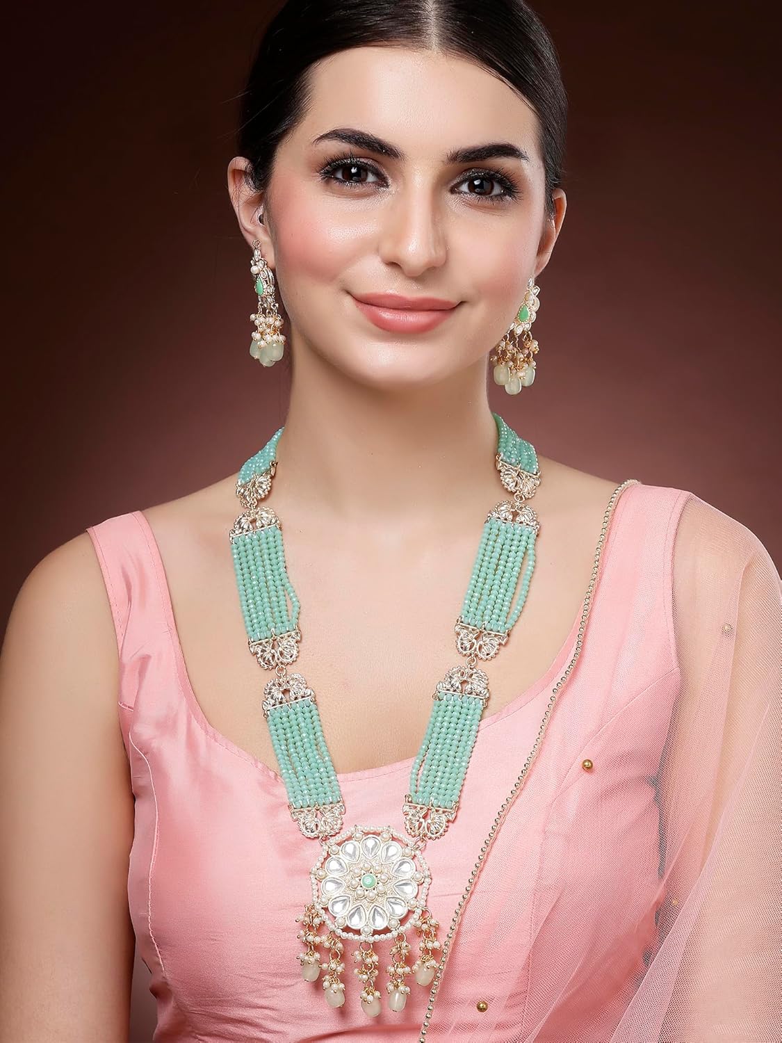 Karatcart Light Green Crystal Long Kundan Rani Haar Necklace Set for Women
