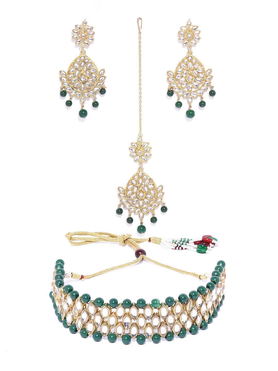 Karatcart Metal Plastic Kundan Choker Necklace with Green Beads for Women