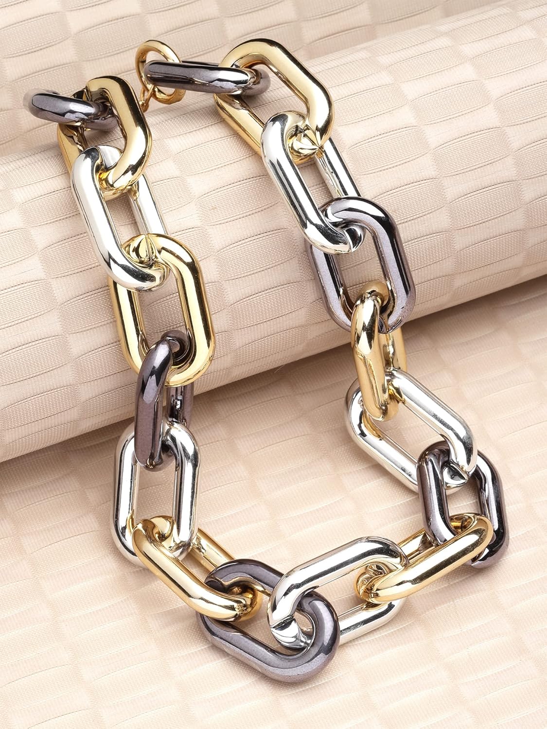 Karatcart Multi Tone Lightweight Big Flat Link Necklace for Women
