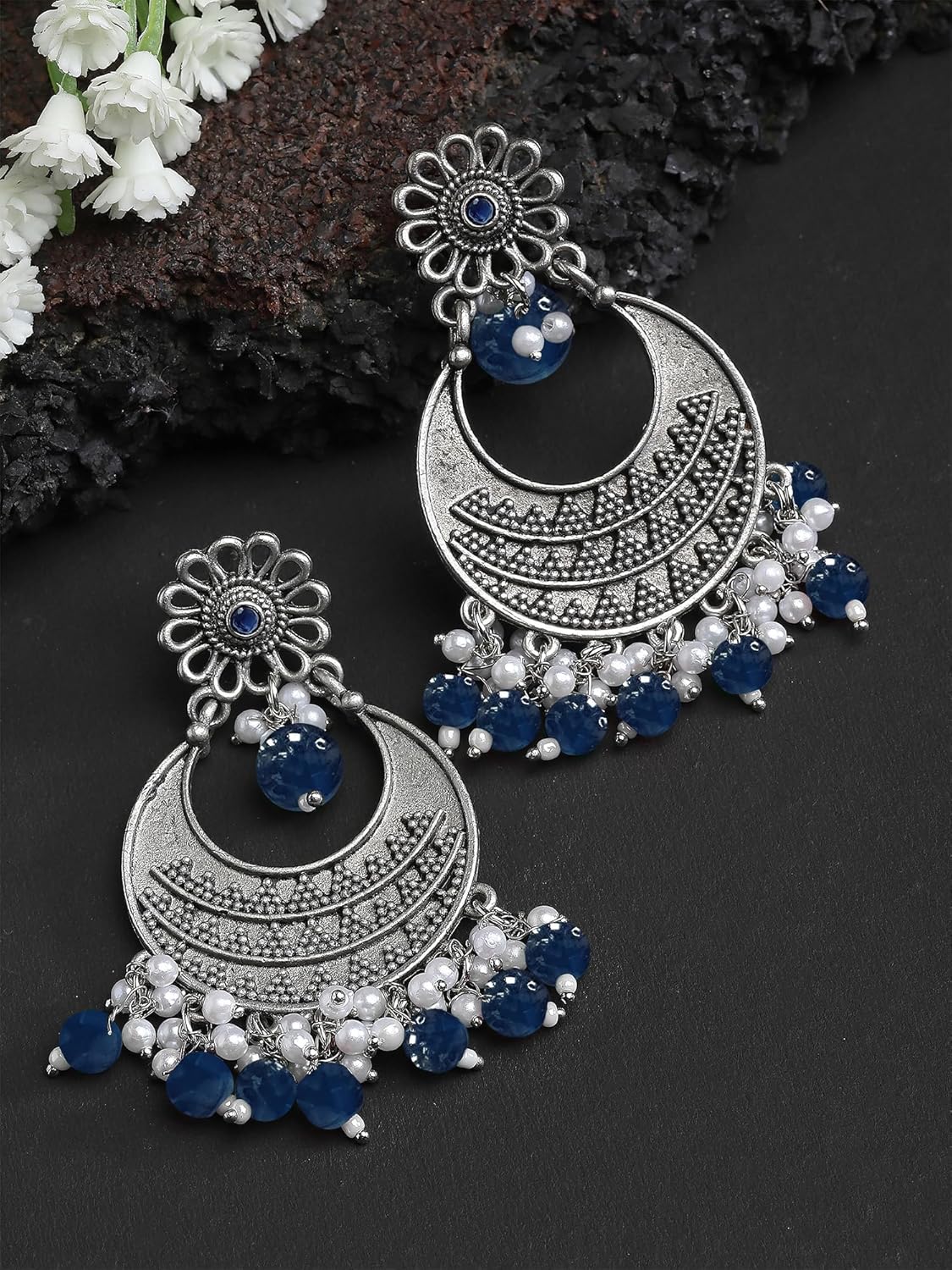 This is a Blue Earrings by Brand Karatcart which has Kundan stones.This is Oxidised Silver. We at KARATCART understand your desire to look the best on any day & we thrive in making any day an occasion. Every individual at Karatcart carries a passion for jewellery and it reflects in our beautiful designs as well as in our breathtaking craftsmanship. We create unique jewellery so you can make heads turn.