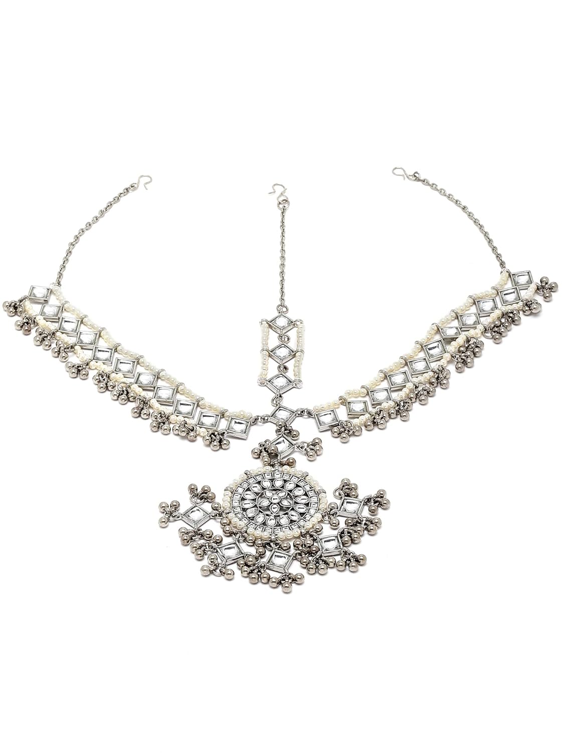 Karatcart Oxidised Silver Handcrafted Kundan Mathapatti for Women