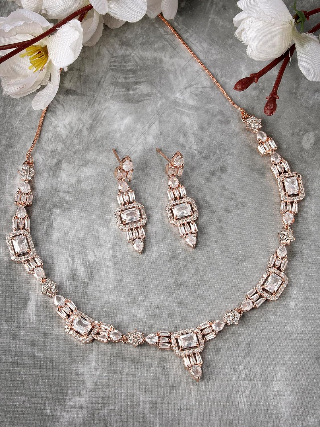Karatcart Rose Gold Plated American Diamond Studded Necklace Set for Women