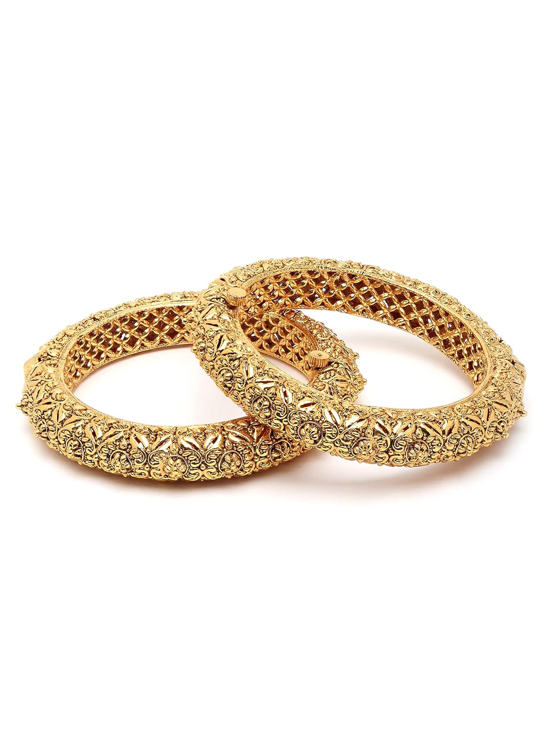 Karatcart Set of 2 Antique Floral Rajwadi Gold Plated Temple Bangles for Women