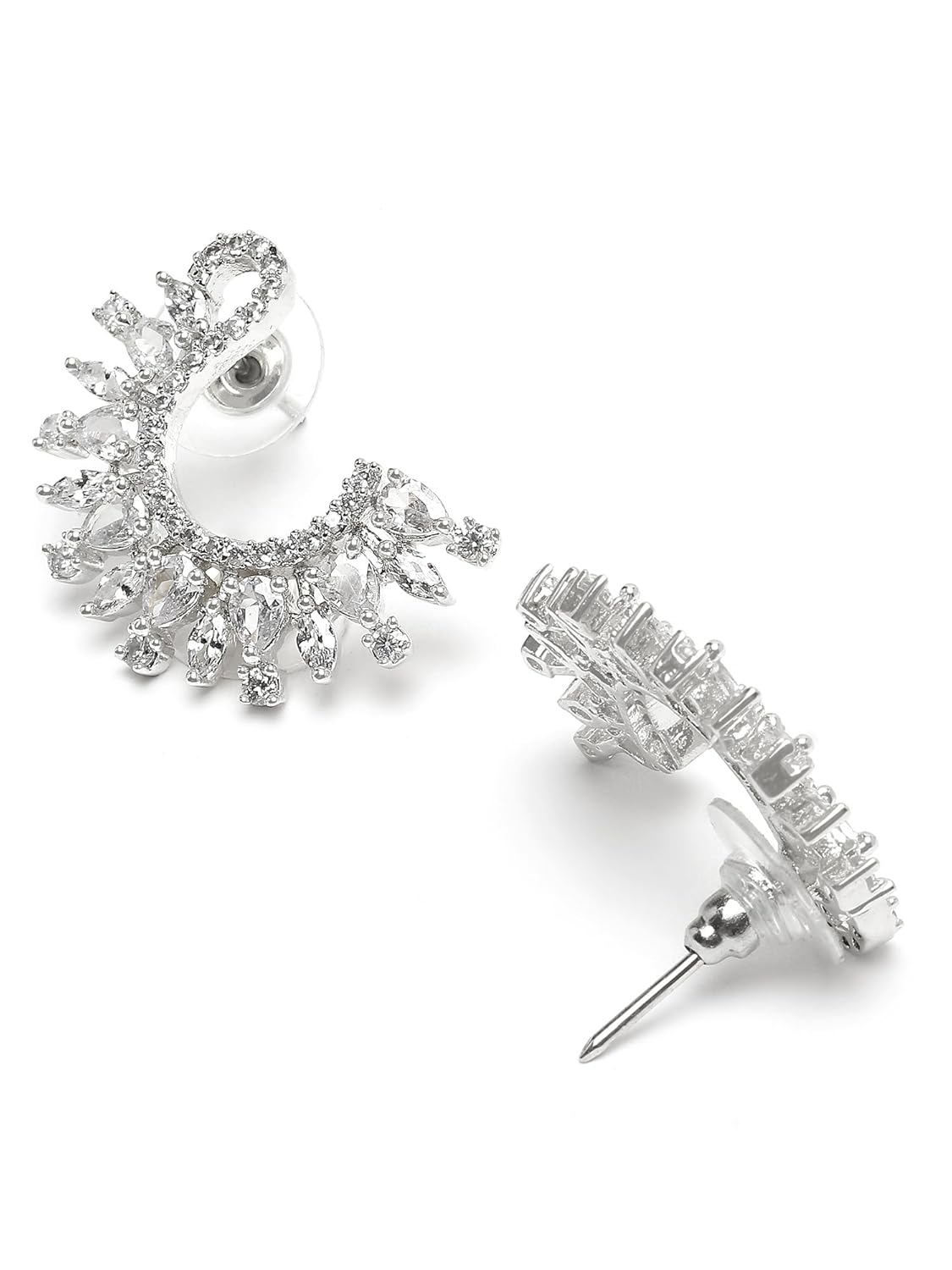 Karatcart Silver Plated American Diamond Stud Earrings for Women