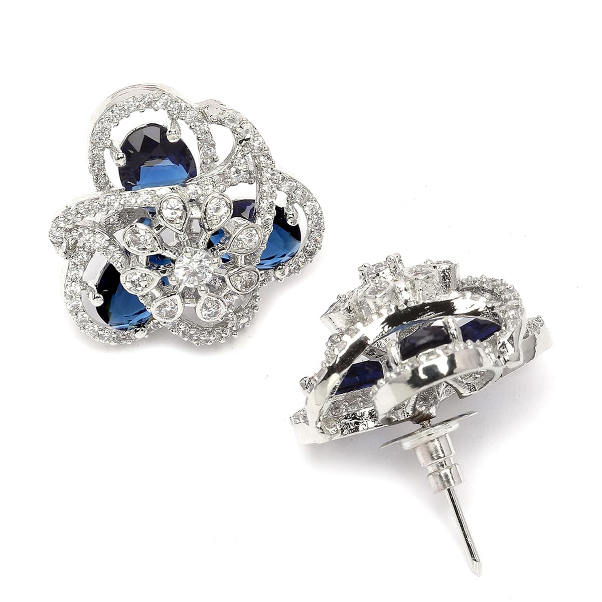Karatcart Silver Plated Green American Diamond Floral Design Stud Earrings for Women