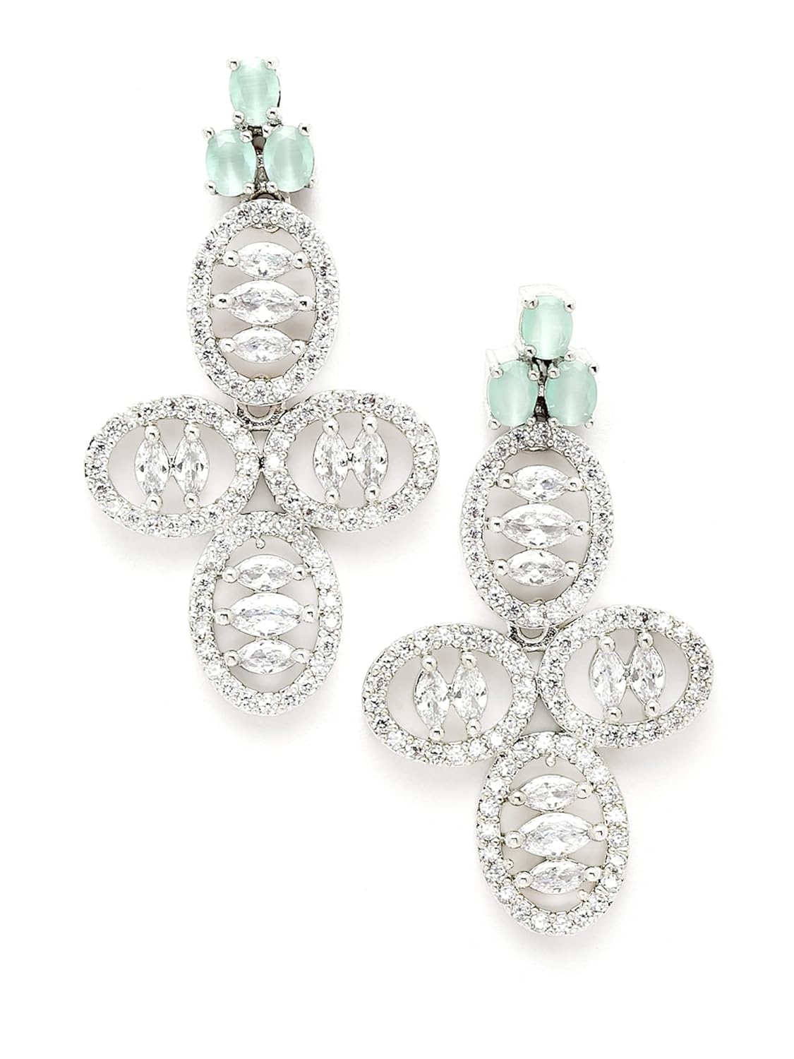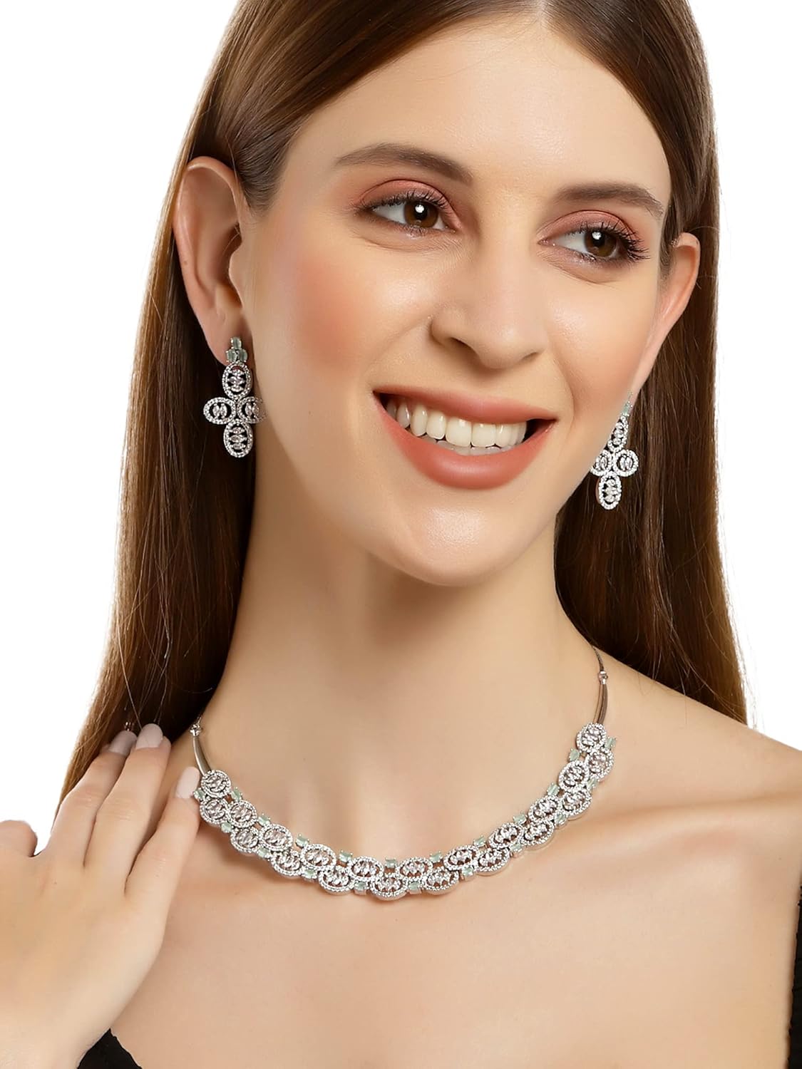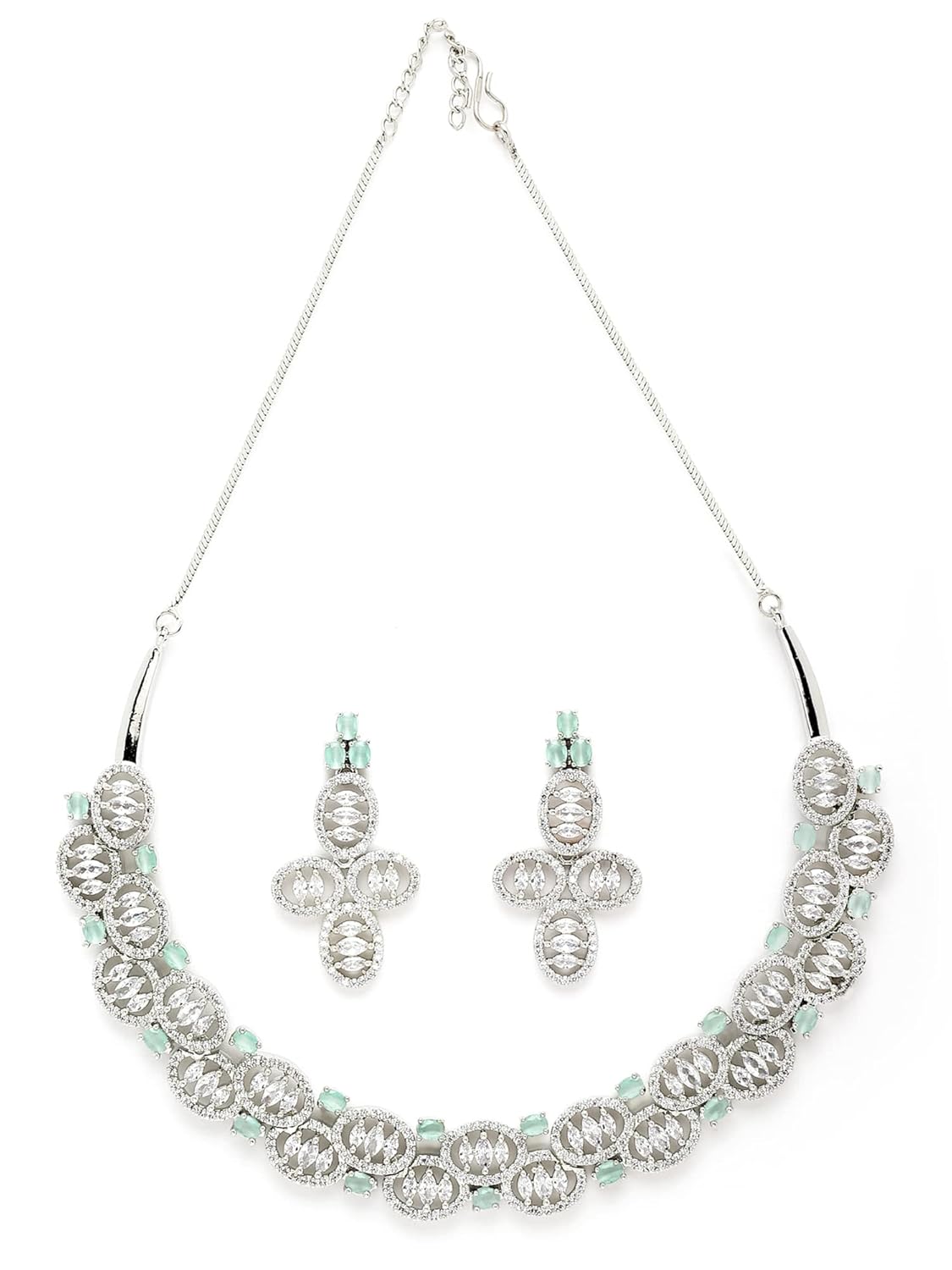 Karatcart Silver Tone Light Green American Diamond Studded Necklace Set For Women
