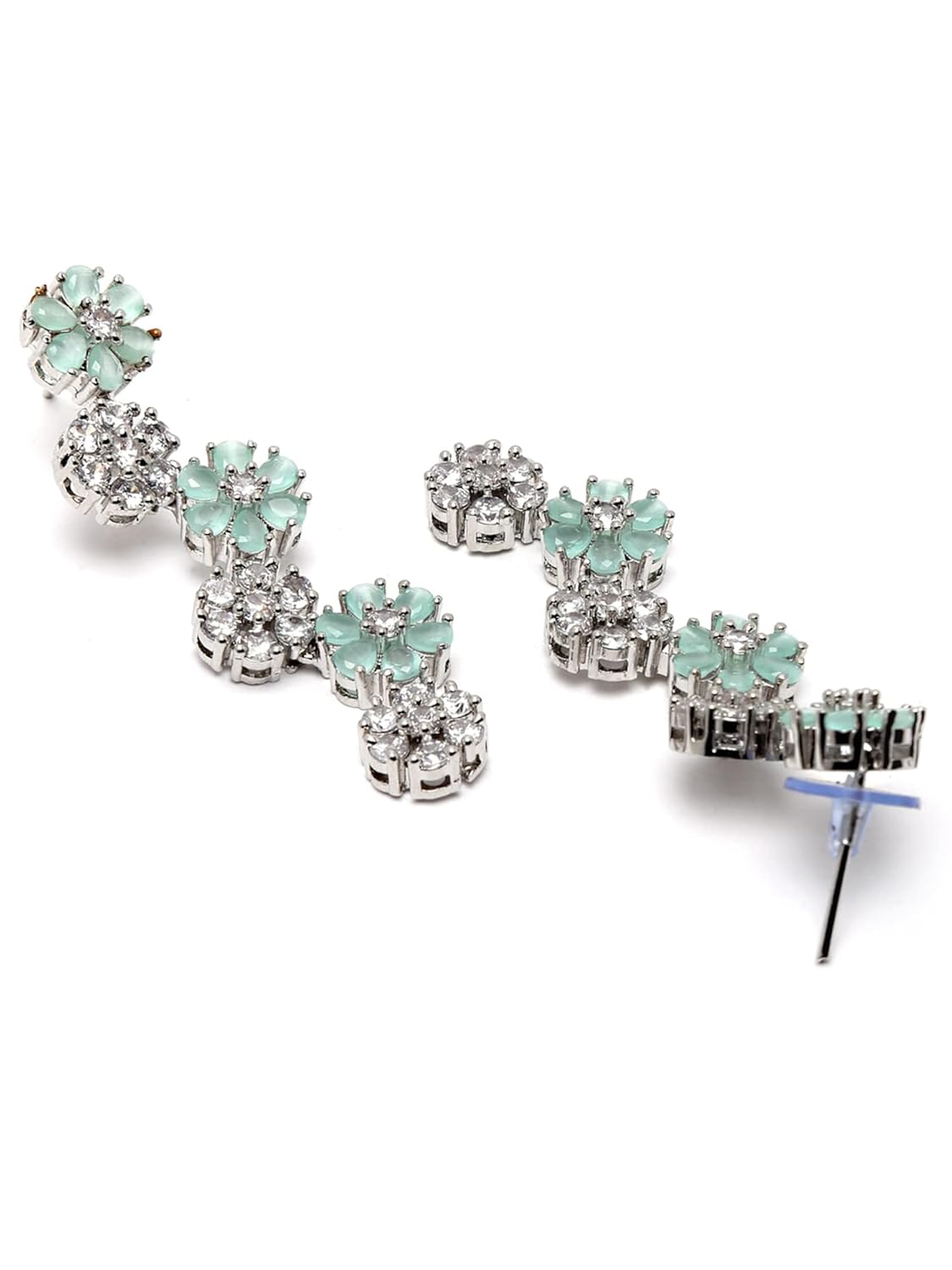 Karatcart Silver Tone Pink Floral American Diamond Necklace Set for Women