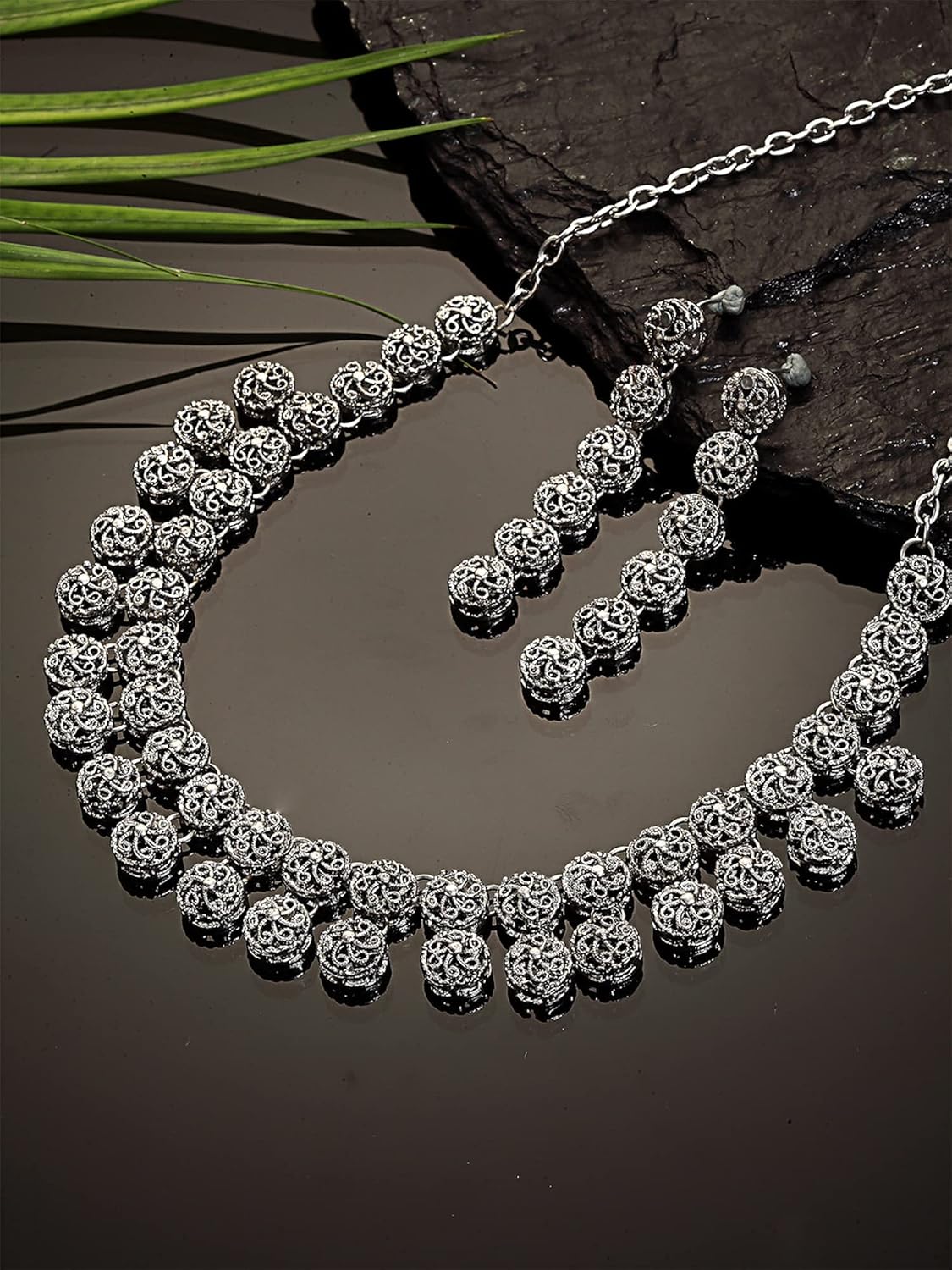 Karatcart Women’s Afghani Tribal Oxidised Choker Necklace Set (Silver)
