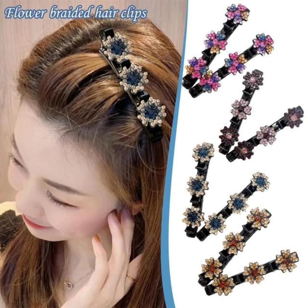 KARDIFF 4Pcs Sparkling Braided Hair Clips Girls Crystal Stone Hair Braid Accessories Fashion Hairpins Hair Styling Sectioning Clips For Thick Hair, Multi Random design