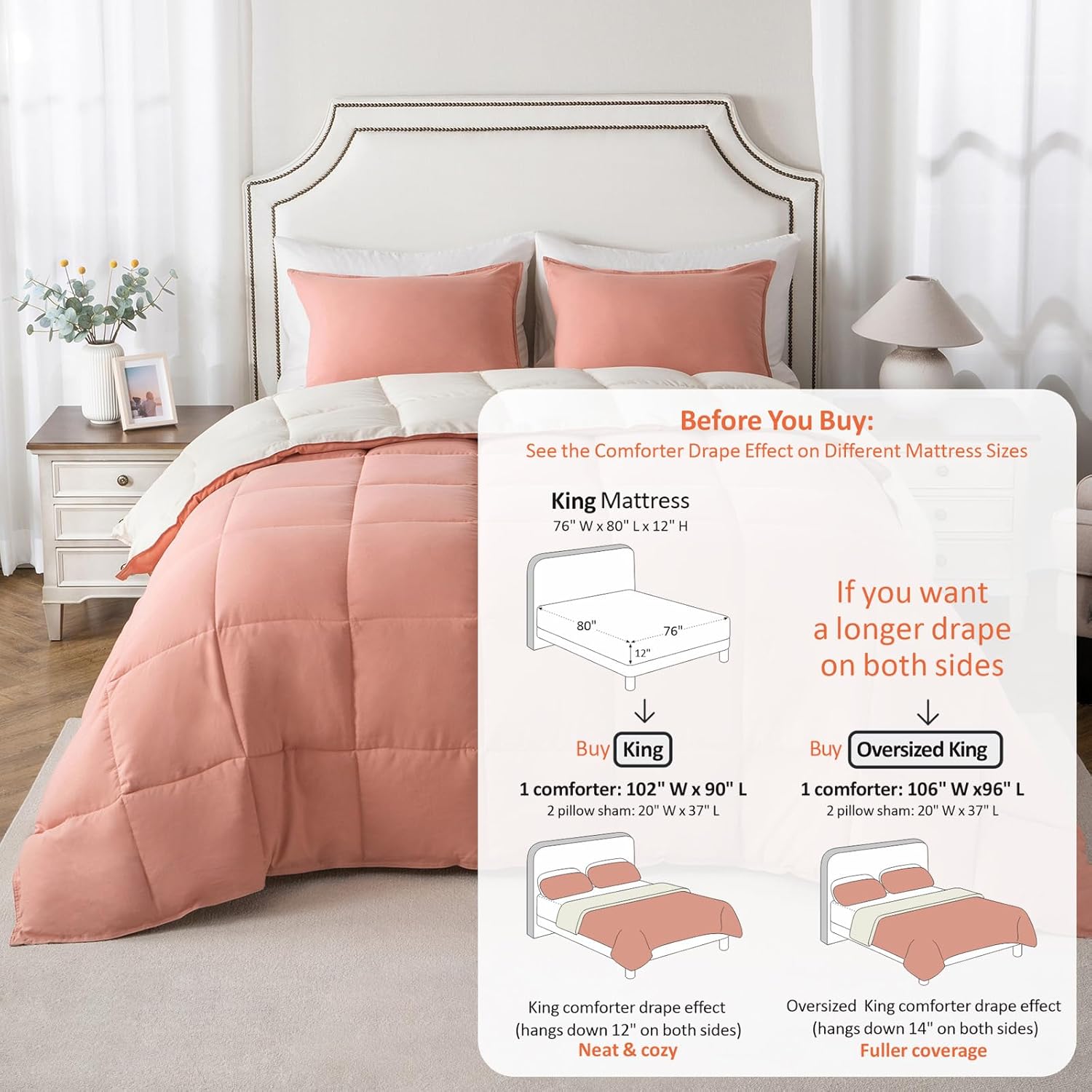 Hypoallergenic Down Alternative Fill: Filled with premium down-alternative fiber, you can use it as a duvet down comforter. This comforter provides exceptional softness and comfort without the allergens associated with duvet insert. The advanced fiber technology ensures long-lasting fluffiness and warmth, making it ideal for those with allergies or sensitivities