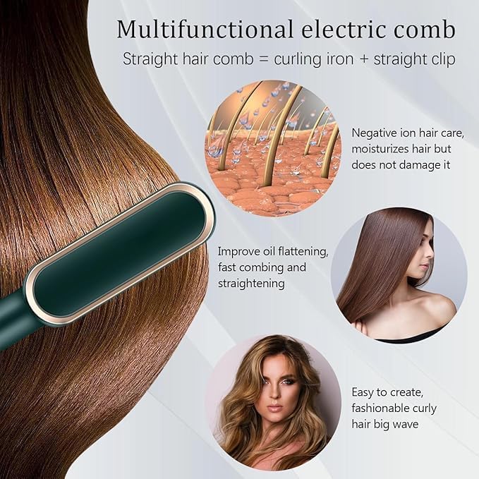 HAIR STRAIGHTENER BRUSH [Ultra-fast heating time and larger heating area] 20 seconds fast heating The built-in iron hair straightener adopts the upgraded ceramic heating (PTC) technology, which can be heated quickly, covering more hair and heating evenly at a time. It is easy to straighten the ends of the hair and get very close to the roots. It is an ideal gift for girlfriend, wife, daughter or friends on birthday, Christmas, Valentine’s Day and New Year.