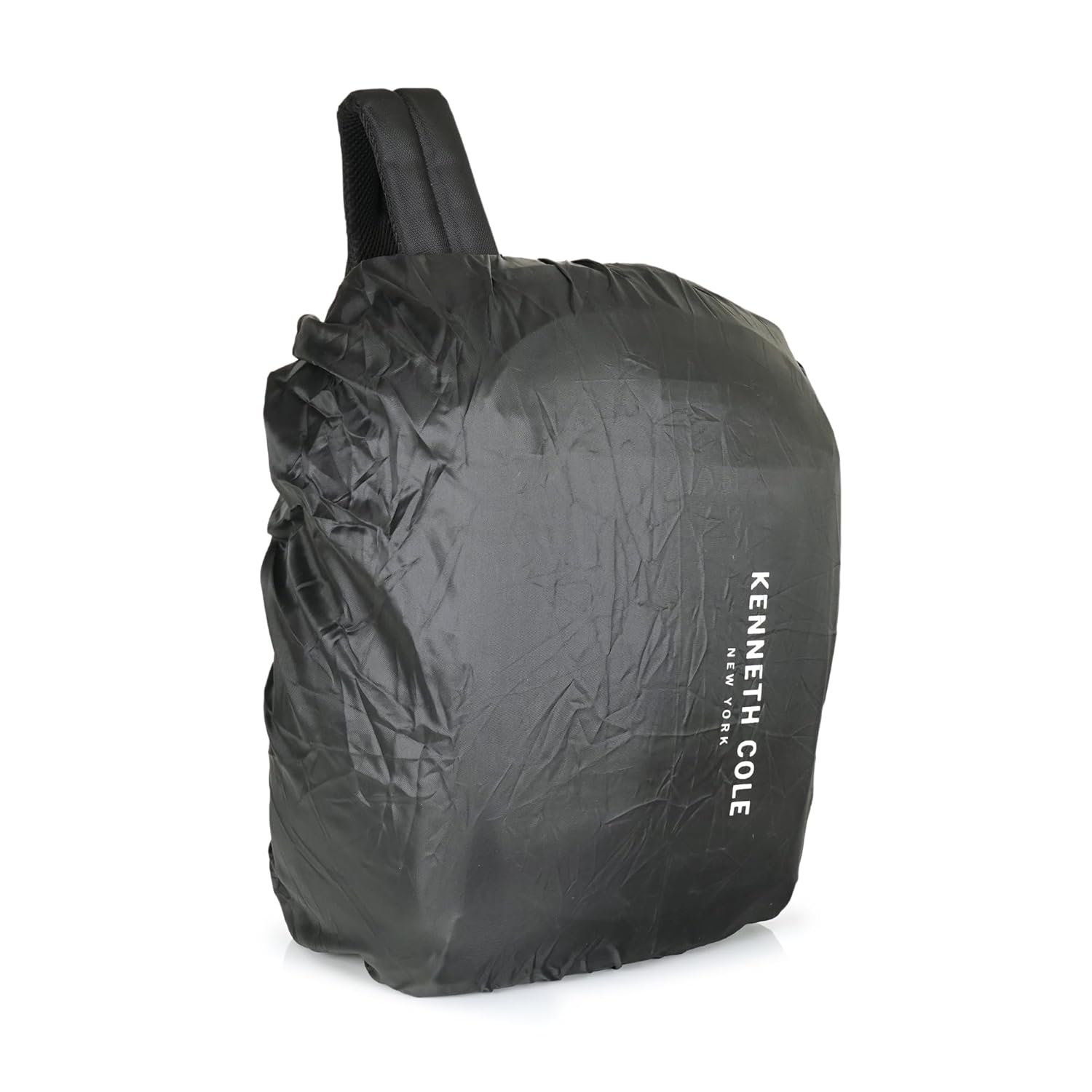 KENNETH COLE Unisex Polyester 16-inch Laptop Backpack | Water Resistant Business/Travel Bag with Rain Cover & Trolley Sleeve | Premium Padded Multi-Compartment Professional Rucksack | Black