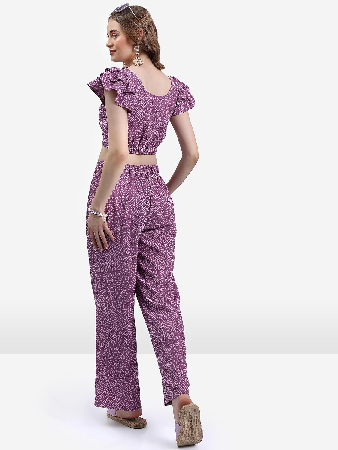 Step into the world of western fashion with this stunning lavender co-ord set for women. Featuring a short sleeve top with pant, this casual fit ensemble is perfect for embracing both style and comfort. Elevate your wardrobe with this must-have set, designed to make a fashion statement during any season.