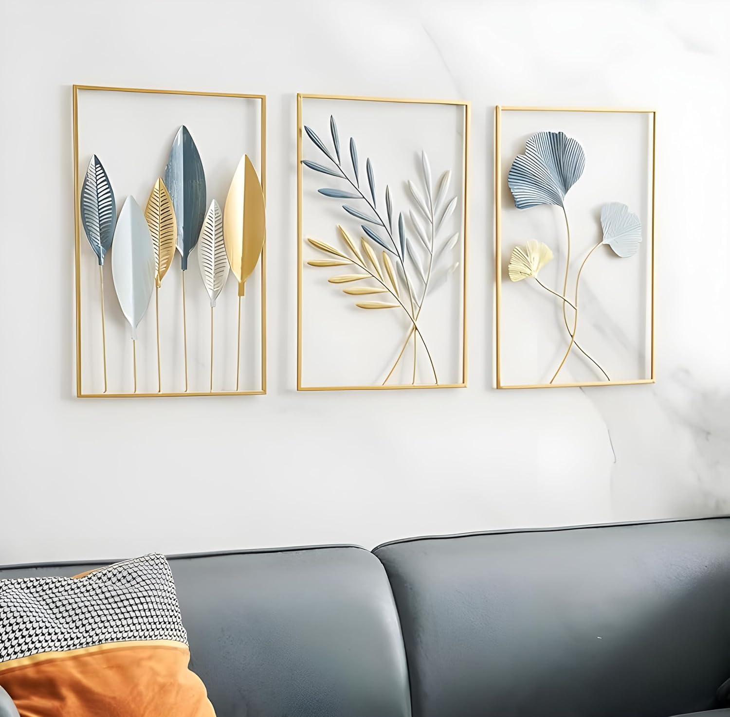 KH International – Wall Decor Metal Wall Art Stylish Leaf Wall Hanging Wall Decoration Gold Glossy Finish for Living Room, Bedroom, Farm House, Hall, Dining Hall -Set of 3 -(Size : 17X11 INCH)