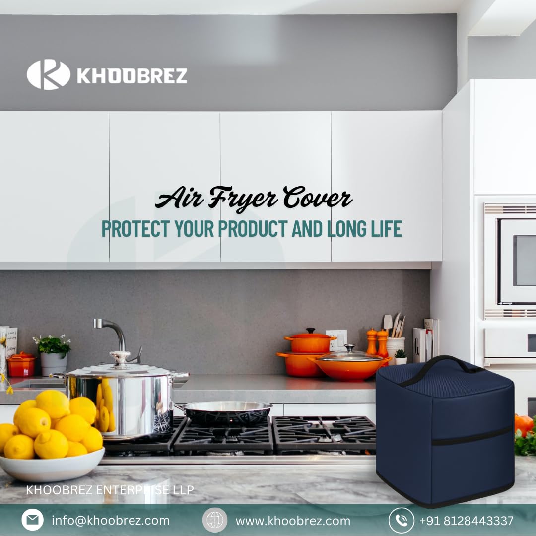 Protect Your Air Fryer in Style! KHOOBREZ Air Fryer Cover is designed to keep your appliance clean, dust-free, and always ready to use. Made from premium quality waterproof fabric, it protects your air fryer from dust, grease, stains, and scratches, while adding a modern touch to your kitchen. Lightweight, durable, and foldable, this cover is easy to store when not in use. Strong stitching and high-grade material ensure long-lasting protection for your appliance, making it a must-have accessory for every kitchen. Key Features 🛡 Complete Protection – Shields your air fryer from dust, grease, stains, and scratches. 💧 Waterproof & Washable – Made of high-quality fabric that is easy to clean and maintain. 🎨 Elegant & Modern Look – Enhances the appearance of your kitchen with a stylish design. 📏 Perfect Fit – Suitable for most major Air Fryer brands and models. 🧳 Easy to Store – Lightweight and foldable design for convenient storage. 🧵 Durable Stitching – Premium build for long-lasting use.