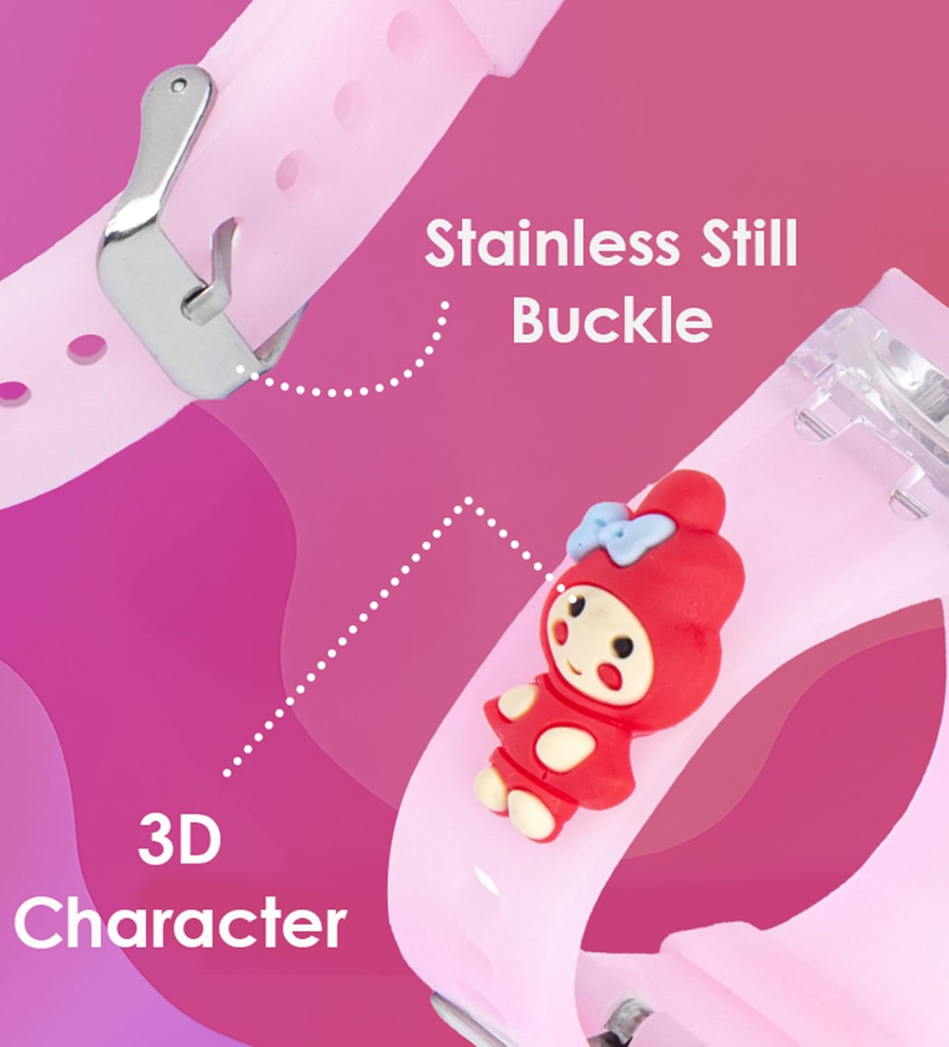 The 3D characters enhance the watch’s attractiveness and give it a cool, stylish vibe.