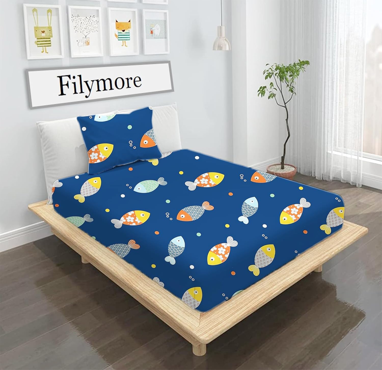 Filymore Cute Blue Fish bedsheet for kids room.