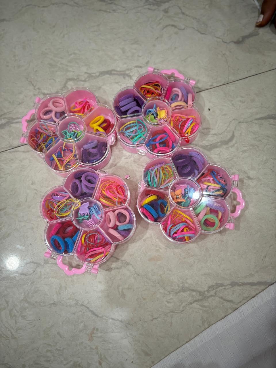 STORAGE DESIGN: Flower-shaped transparent case with 7 compartments for organized storage and easy access to hair accessories