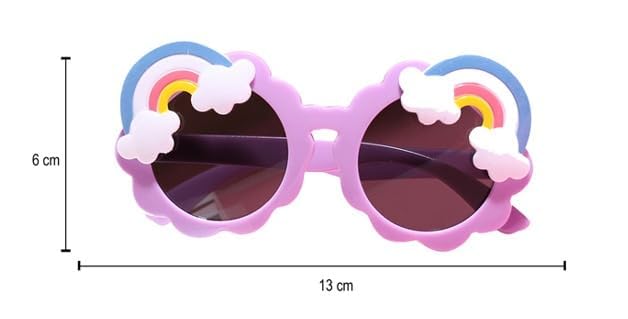 Add a splash of whimsy to your child’s style with these adorable rainbow cloud sunglasses! Perfect for kids aged 3-8 years, these charming eyewears feature a delightful design with fluffy white clouds and rainbow accents adorning the frames. Available in lovely shades of pink, dark pink, and sky blue, these modern and stylish sunglasses are sure to make your little one stand out. The round frames are specifically crafted for children’s faces, offering both comfort and protection. The dark-tinted lenses help shield young eyes while outdoors, making them ideal for playground adventures, beach outings, or sunny day activities. The durable plastic construction is designed to withstand the active lifestyle of energetic children. These unisex sunglasses combine fun and functionality, making them a perfect accessory for both boys and girls. The lightweight design ensures comfortable wear throughout the day, while the playful aesthetics appeal to children’s imagination. These sunglasses make for a delightful gift option that brings both style and sun protection to your child’s wardrobe.