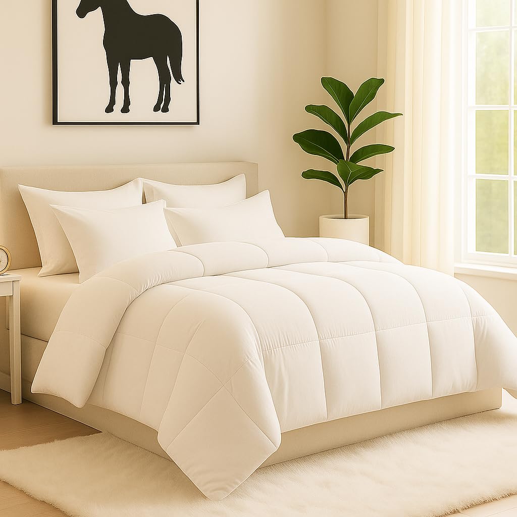 King Size Comforter (102×108 Inch) – 300 GSM Soft Microfiber Blanket for Winter | Warm & Lightweight White Bed Comforter | Cozy All Season Quilt | Machine Washable