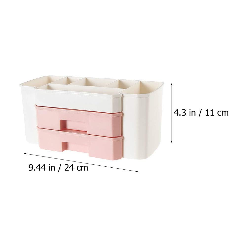 Vanity Box Storage Organizer Premium PP Material: Made from high-quality PP material with smooth, delicate edges that are gentle on your hands. Durable and easy to clean. Removable 2 Drawer Storage: Features easy-to-remove drawers for convenient access and cleaning. Ideal for organizing items like cotton pads, cotton swabs, and jewelry. Anti-Skid Design: Equipped with an anti-skid base to ensure stable placement. High cushion design prevents dust accumulation and keeps your items clean. Intuitive Split Storage: Meticulously designed for compact and efficient counter storage, making it easy to find your belongings. Top Compartment Storage: Keeps lotions, lipsticks, and makeup eggs readily accessible while preventing clutter. Deep Side Storage: Accommodates long bottles such as makeup brushes and sprays in the deep side compartments for added versatility.