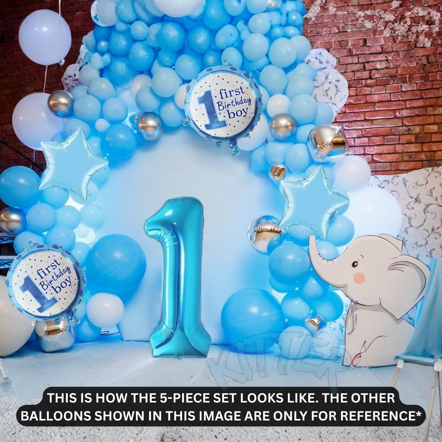 INCLUDES 5 PIECES – Set features 1 large Number 1 blue foil balloon, 2 blue star balloons, and 2 round blue balloons, perfect for a stylish theme.