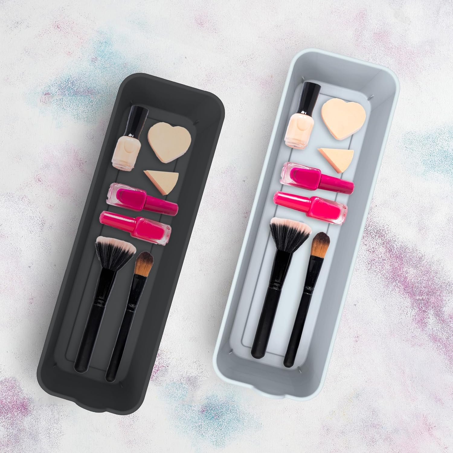 Multiple storage compartments: Each tray features multiple compartments of different sizes, allowing you to organize your items efficiently. Keep your pens, pencils, paper clips, jewelry, and other small accessories neatly arranged and easily accessible.