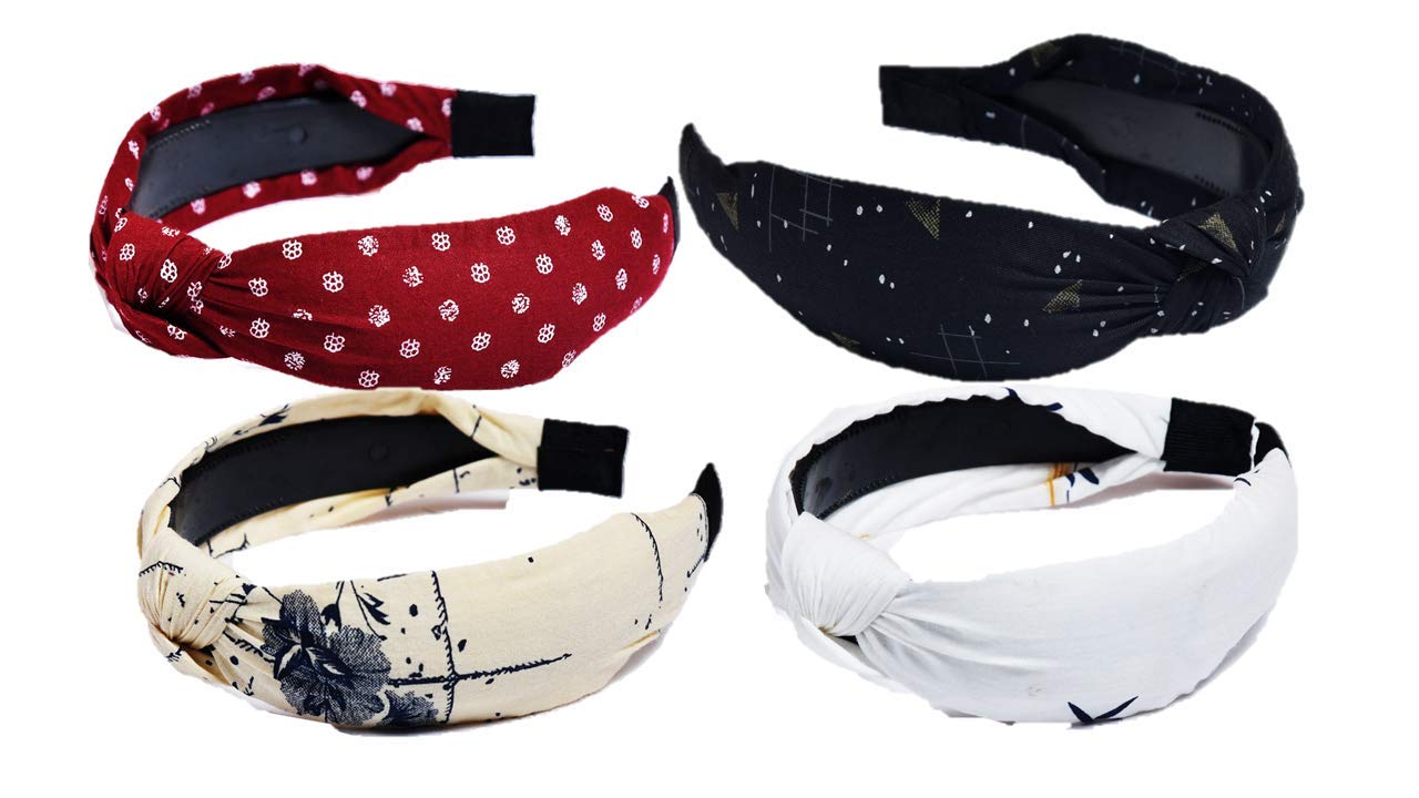 Korean Style Solid Fabric Knot with Tape Plastic Hairband Headband/Hair Accessories for Girls and Woman(Multicolor, Pack of 4) (Multi-7)